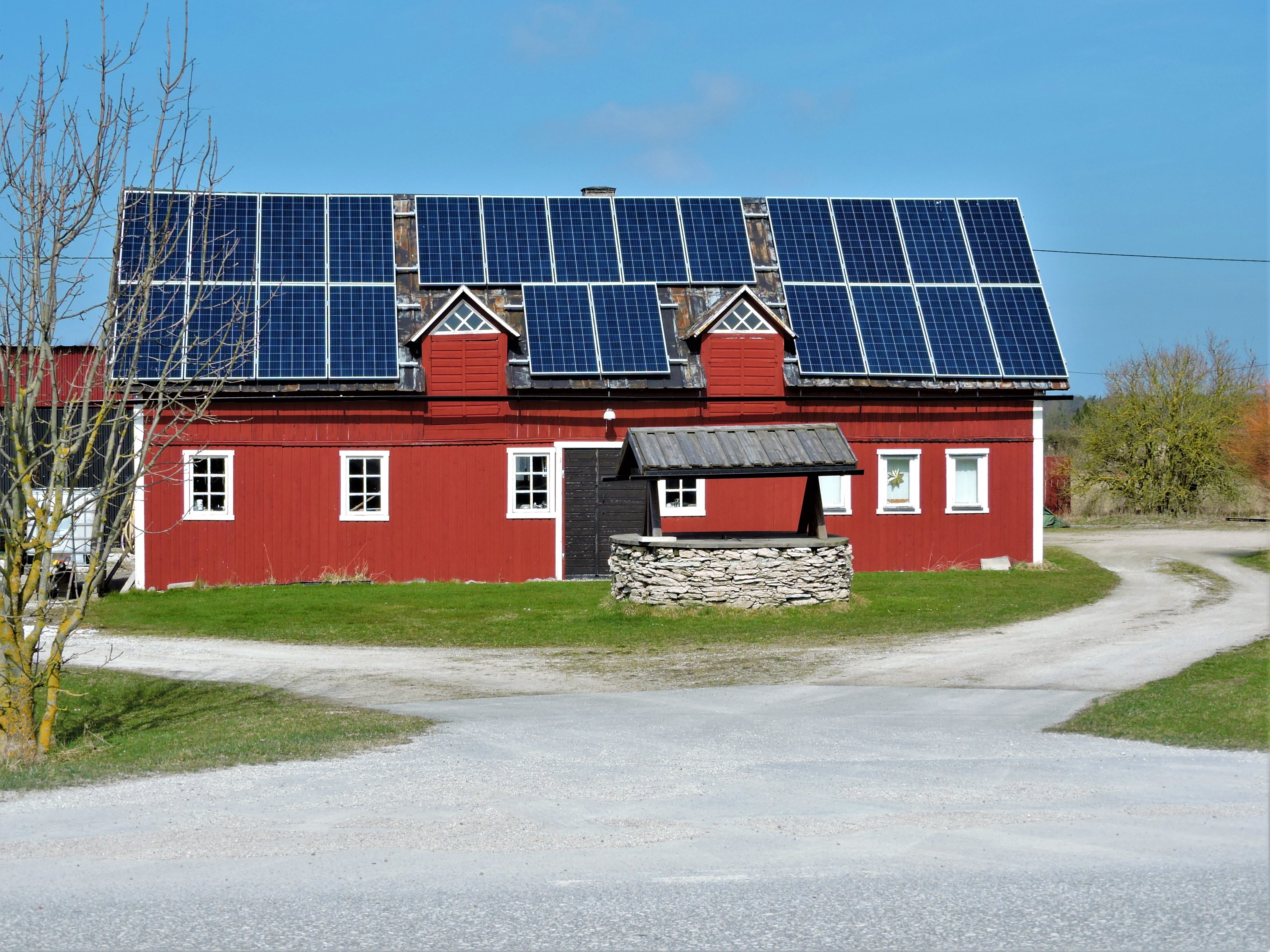 En skillnad från förra sommaren är (tycker jag) att många fler gotländska hustak är klädda med solceller. Ofta en liten bod en bit från huvudbyggnaden eller ett tak på en längre lagårdsbyggnad. Det förändrar bilden av det avlövade landskapet när de röda taken av tegel eller målad plåt plötsligt lyser i något rutigt i svart och glasfärgat. Jag har inte hängt med i priser och vinst ur uppvärmningssynpunkt eller bidragsmöjligheter men förvandlingen ser plötslig ut, den kan ha pågått en tid, kanske har grönskan på sommaren gjort att det inte varit så tydligt som nu. Då jag kom hem och skruvade upp radion hörde jag just att det ska bli mer bidrag för att sätta upp solceller.