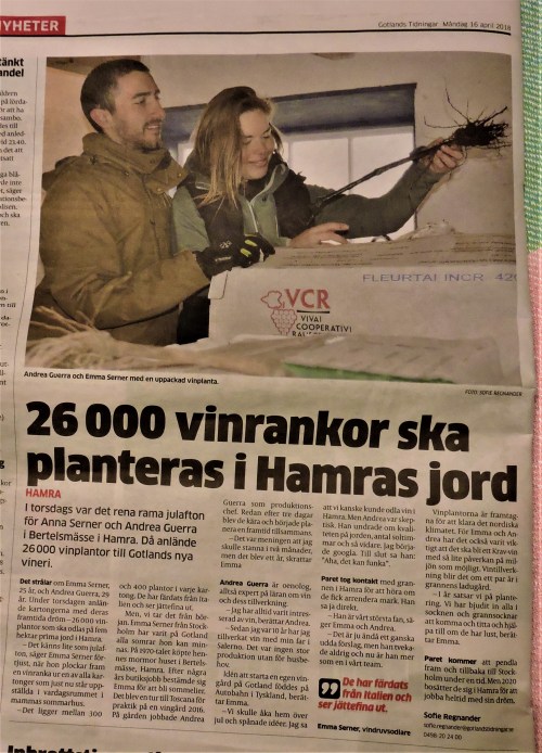 Ja Björn det växer vin på jättemånga ställen även på Gotland redan och de sitter där och väntar på att det ska få bli gårdsservering och kanske blir det väl så en dag. Lite kallare är det ju där högst uppe där vi håller till 16 m över havet eller något ditåt men höstarna är ju milda. Sen är ju vinet bra på att leta upp vatten själv, så det går nog om de är lite envisa.