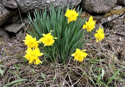 Förr om åren fanns det påskliljor i dikena på många ställen, de verkade nästan vilda, alltid dubbla och tofsiga.
