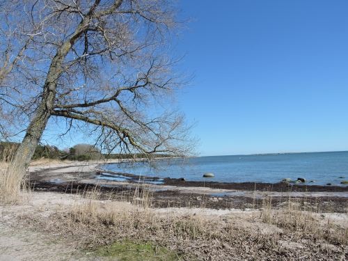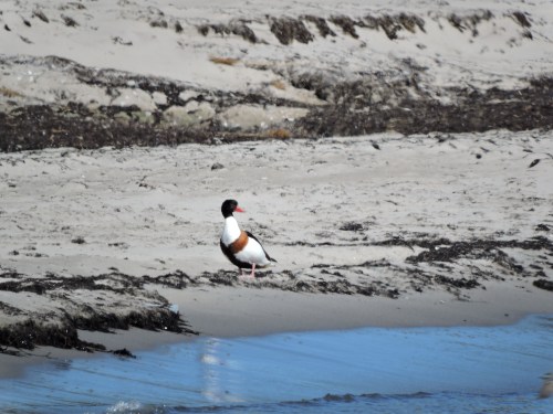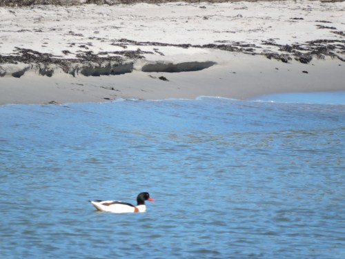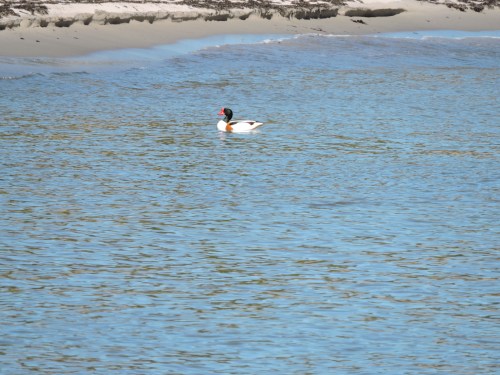 På Lasses födelsedag åkte vi till Norebodarna och jag hade honom med mig i bilen, han tyckte om de gånger då vi åkte dit, det var liksom längst bort och bara hav utanför. Senaste gången då vi svängde ut vid fiskebodarna skyndade herr och fru gravand ut i vattnet med ett tiotal små efter sig i en rad. Gravanden känns som den skyggaste eller känsligaste fågeln och vi störde den. Vattnet var guppigt och de små blev kastade hit och dit och vi blev inte kvar så länge för de behövde nog komma iland.