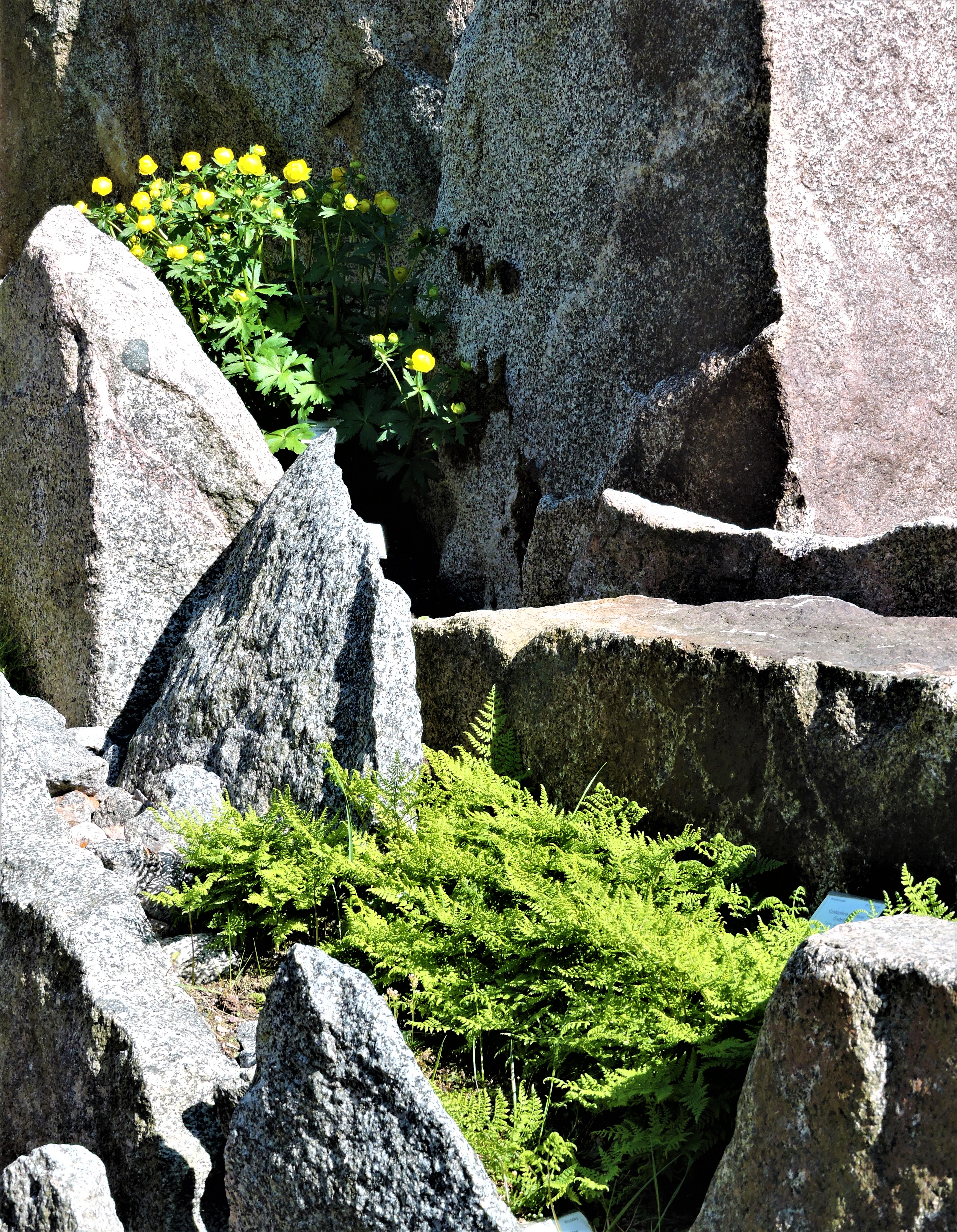 Trollius, smörbollar lever och värmer stenarna och ser dessutom ut att trivas. Storstenar på 55 ton styck (den tyngsta) har burits hit och placerats utan trumpetfanfarer, varför sker sådana här byggen i tysthet? Finns transporten dokumenterad? Har stenarna sin ursprungliga form, de flesta ytorna ser gamla ut. De har hämtats i Uppland efter samråd med geologer på SGU och var fanns de?