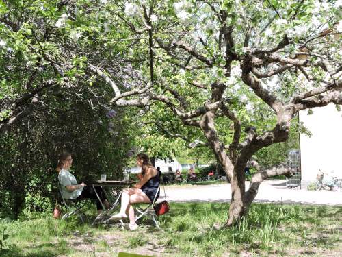 och sen lite kaffe, te och våfflor på café Viktoria under blommande äppelträd och doftande syrener. Det var en skön Pingstdag..