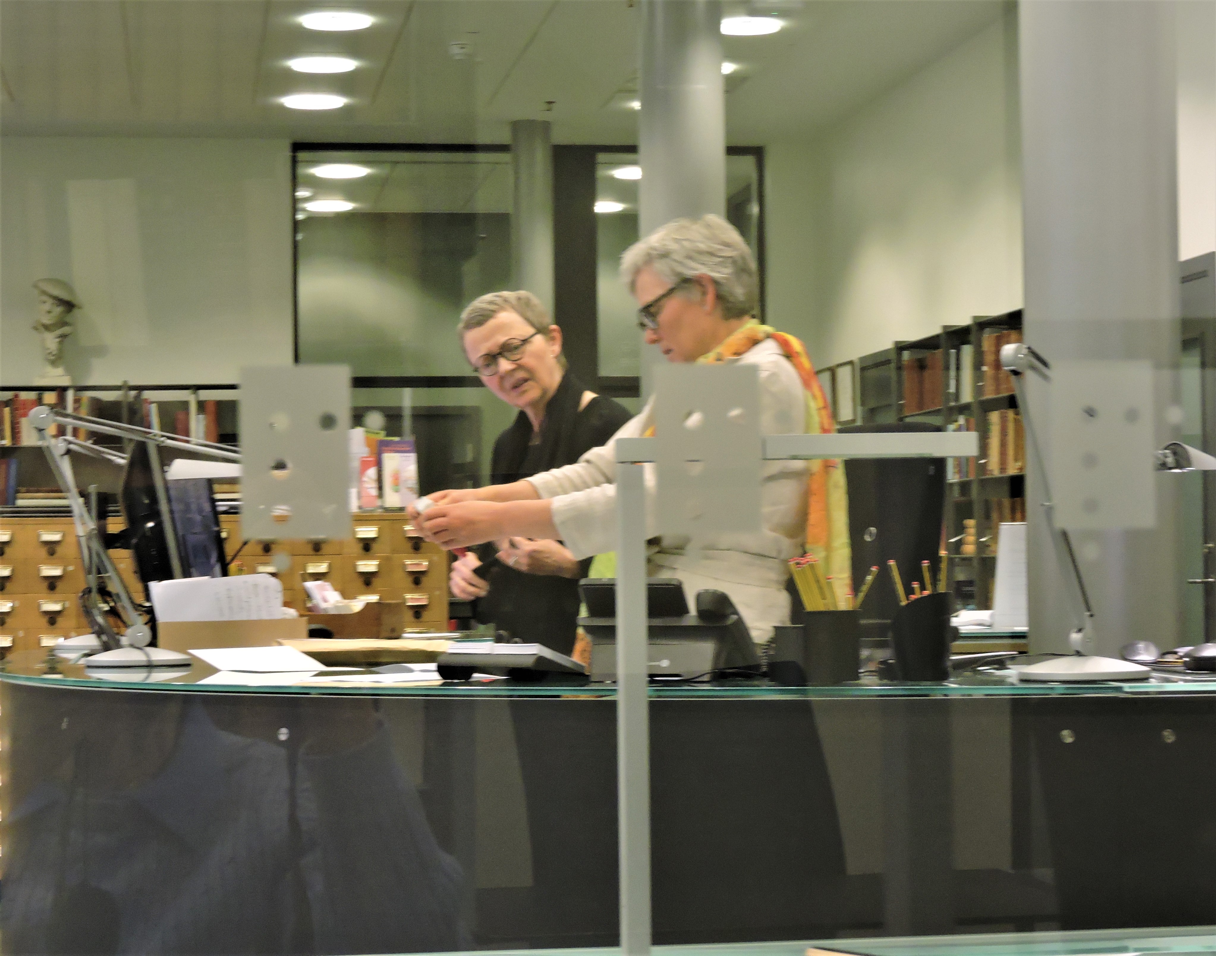 Utsikt från det allra innersta rummet i Nasjonalbibloteket, bakom flera glasdörrar och avklädd alla lösa föremål utom kamera och blyertspenna. I detta tillstånd av tystnad och isolering hade jag glömt telefonen i bakfickan, den skulle vara avstängd men den ringde förstås. Jag förstod av ansiktena bakom glaset hur fel det var trots att det inte fanns någon mer besökare.