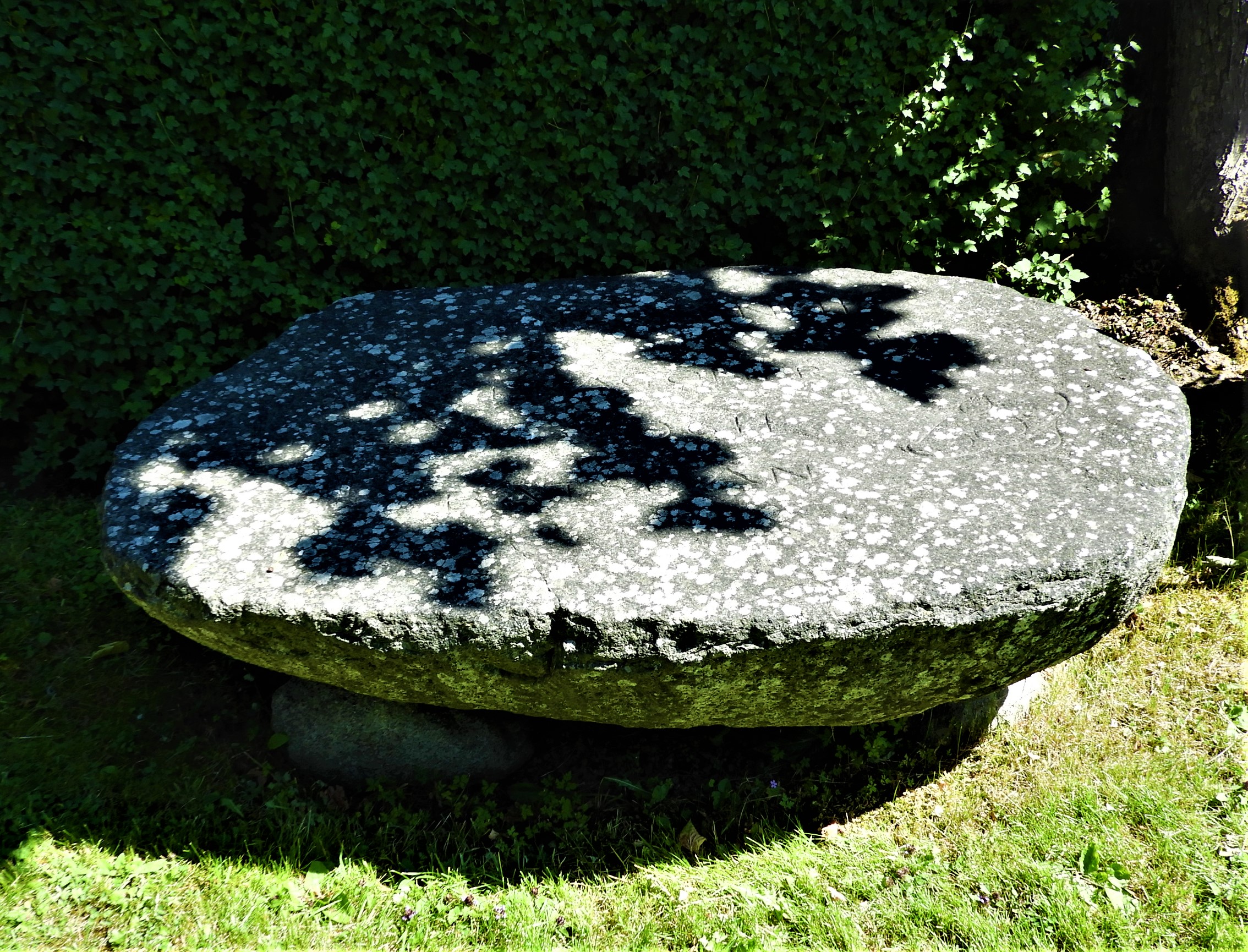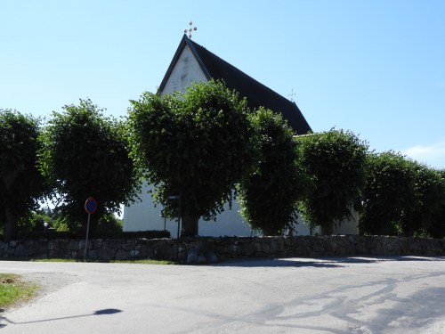 Mona tog mig med, vi var lite tidiga och gick först runt på kyrkogården som kantades på alla sidor av urgamla lindar, alla av ungefär samma tjocklek, säkert flerhundraåriga. Monas ögon hittade stenar utöver de vanliga