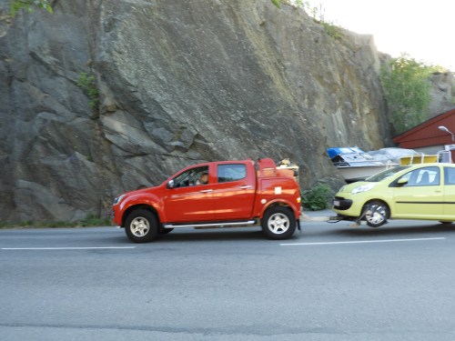 Två rara bärgare sa att de inte ville släppa iväg mig med den dåliga kopplingen så det var bara att gilla läget och se den åka på egen utflykt.
