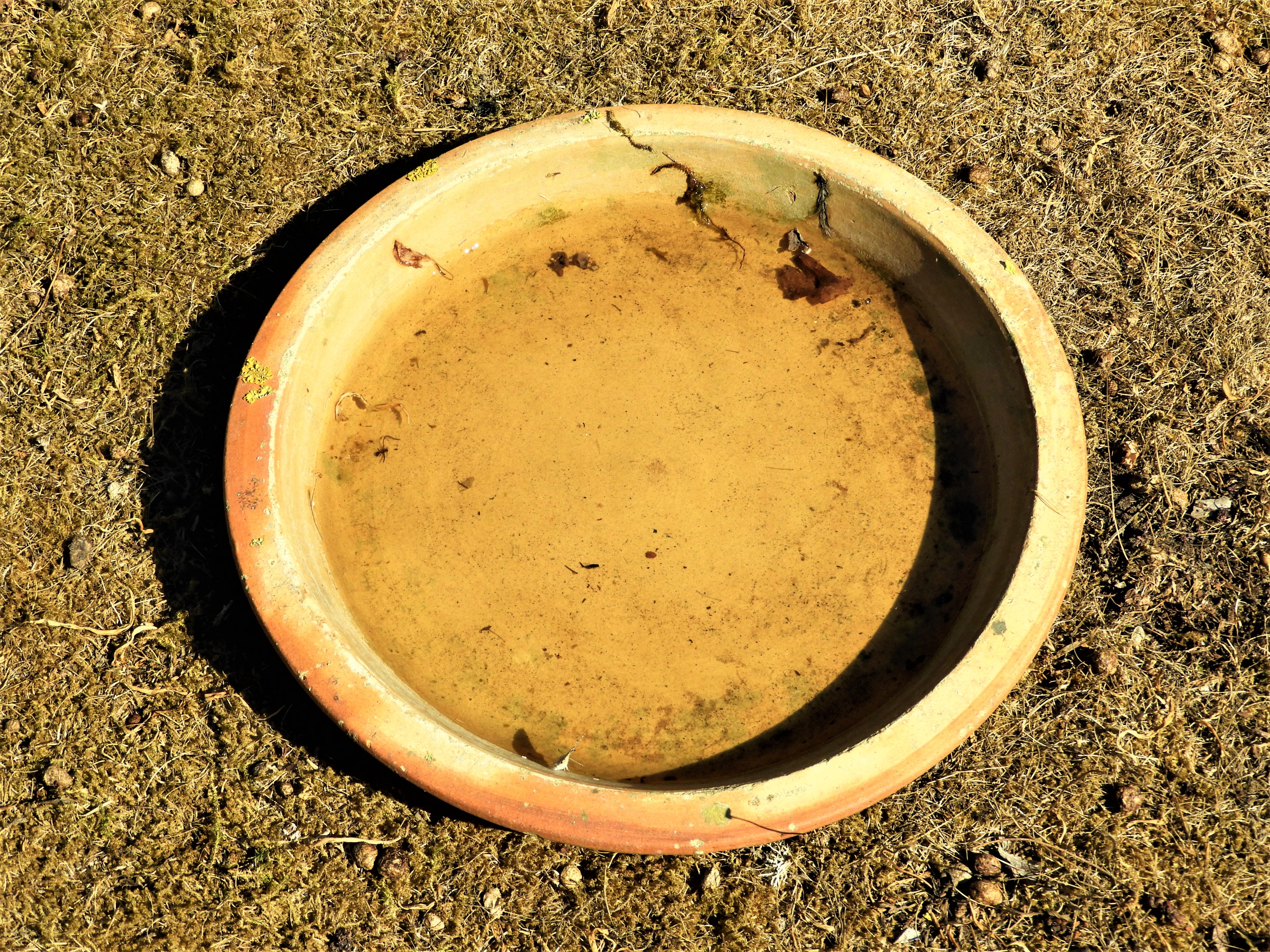 Jag satte ut ett stort fat med vatten, om fåglarna skulle behöva och det blev använt på natten. Fåglarna ruggar efter fortplantningen, de ser lite stökiga ut och det låg fjädrar i den lilla vattenresten på morgonen. Hur rabbisarna överlever utan vatten fattar jag inte.