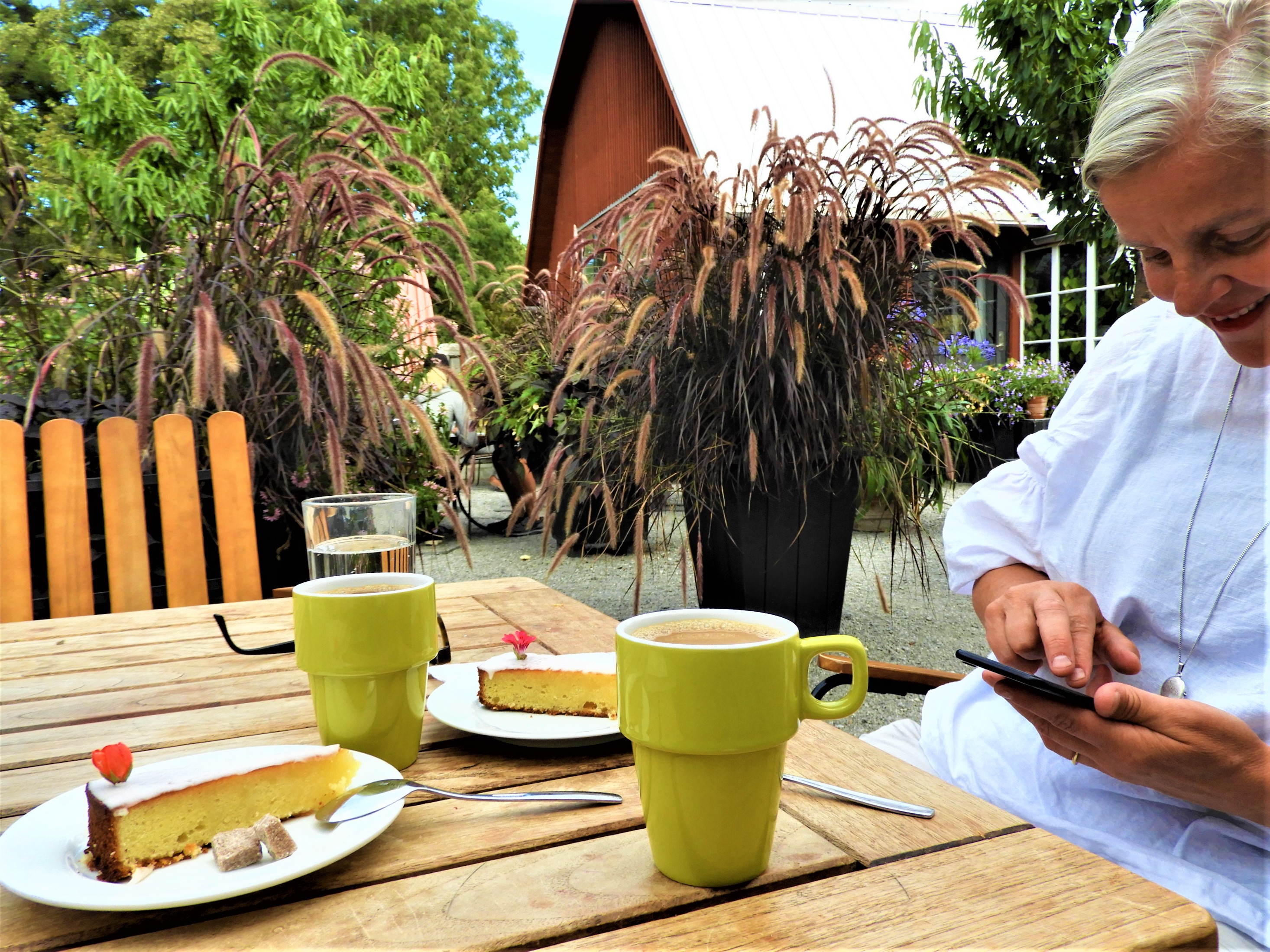Jag kände efter och bestämde mej för att åka. Innan jag hunnit ta på mig skorna, ringde Karin och undrade om jag inte var sugen på att fika i trädgården som har allt.