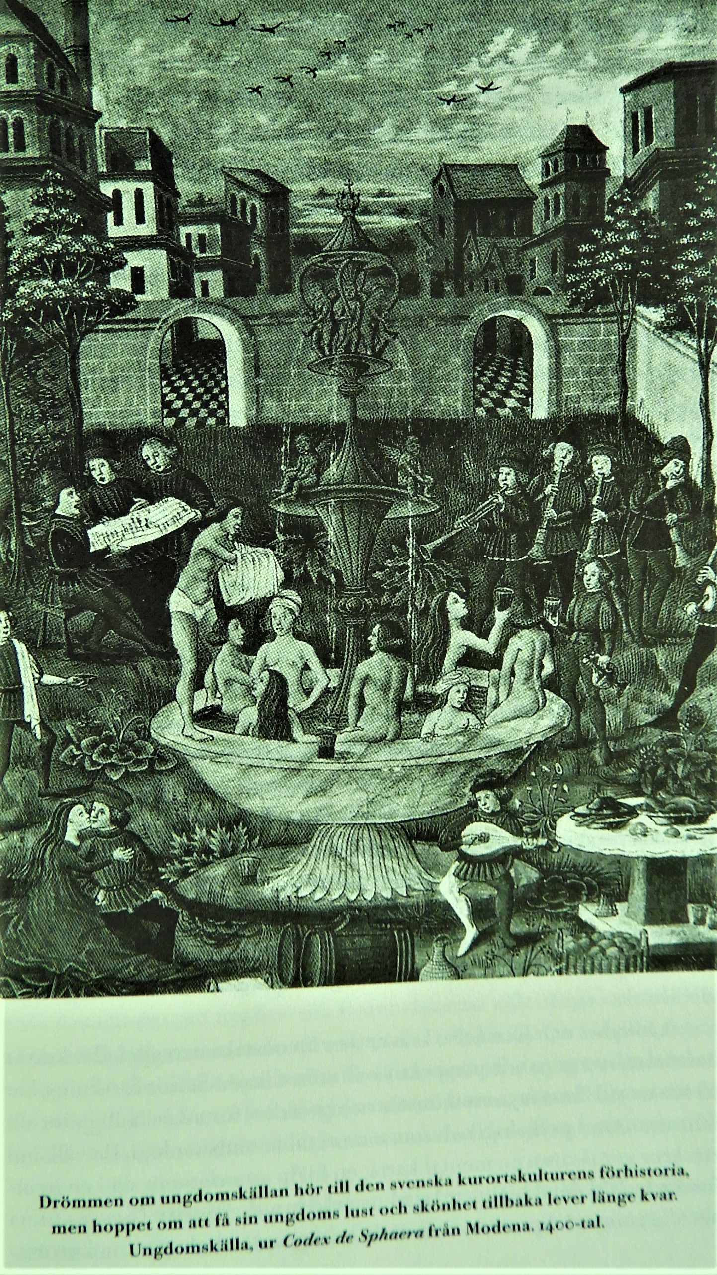 Glenn hittar alltid något som berör, hälsobrunnar har varit aktuella en tid, vi har själva en på Gotland och Karin har kommit på att Södertälje där hon bor har varit brunnsort på 1800-talet med vattenkuranstalt och brunnspark, då hittade Glenn en idéhistorisk avhandling av docent Elisabeth Mansén från 2001 om den svenska kurortskulturen 1680-1880. En tegelsten med bilder och alla tänkbara aspekter.