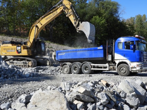 Här står en stenfylld skopa och väntar efter en rast, hur orkar den lyfta?