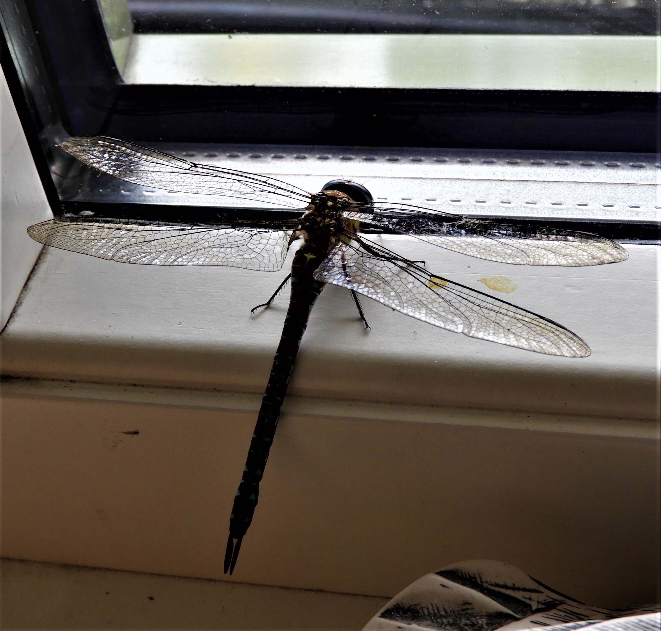 När jag kom hem igen prasslade det envist i fönstret och där kämpade en trollslända för att komma ut. Var ska en trollslända – dragonfly hälsa på om inte på Dragonvägen och hos Trollsländans textilverkstad, men den fick flyga.