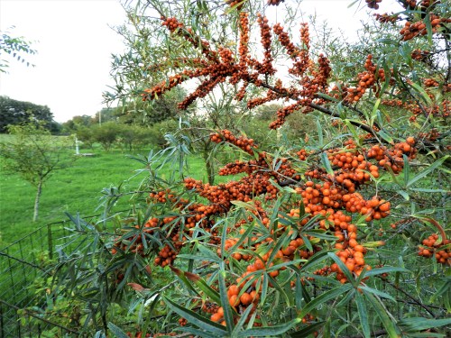De var kvar och det här är roligt, alla buskarna som nu har bär är fruar till Romeo och alla var ett år nergnagda helt till grässvålen av rådjur som hittat lugna marker runt myren. Vi förstärkte stängslet där buskarna stått och tänkte plantera nya buskar men såg att rotskott var på väg och dem sparade vi på och sen har det tagit flera år för dem att växa till sig och ge den här skörden.
