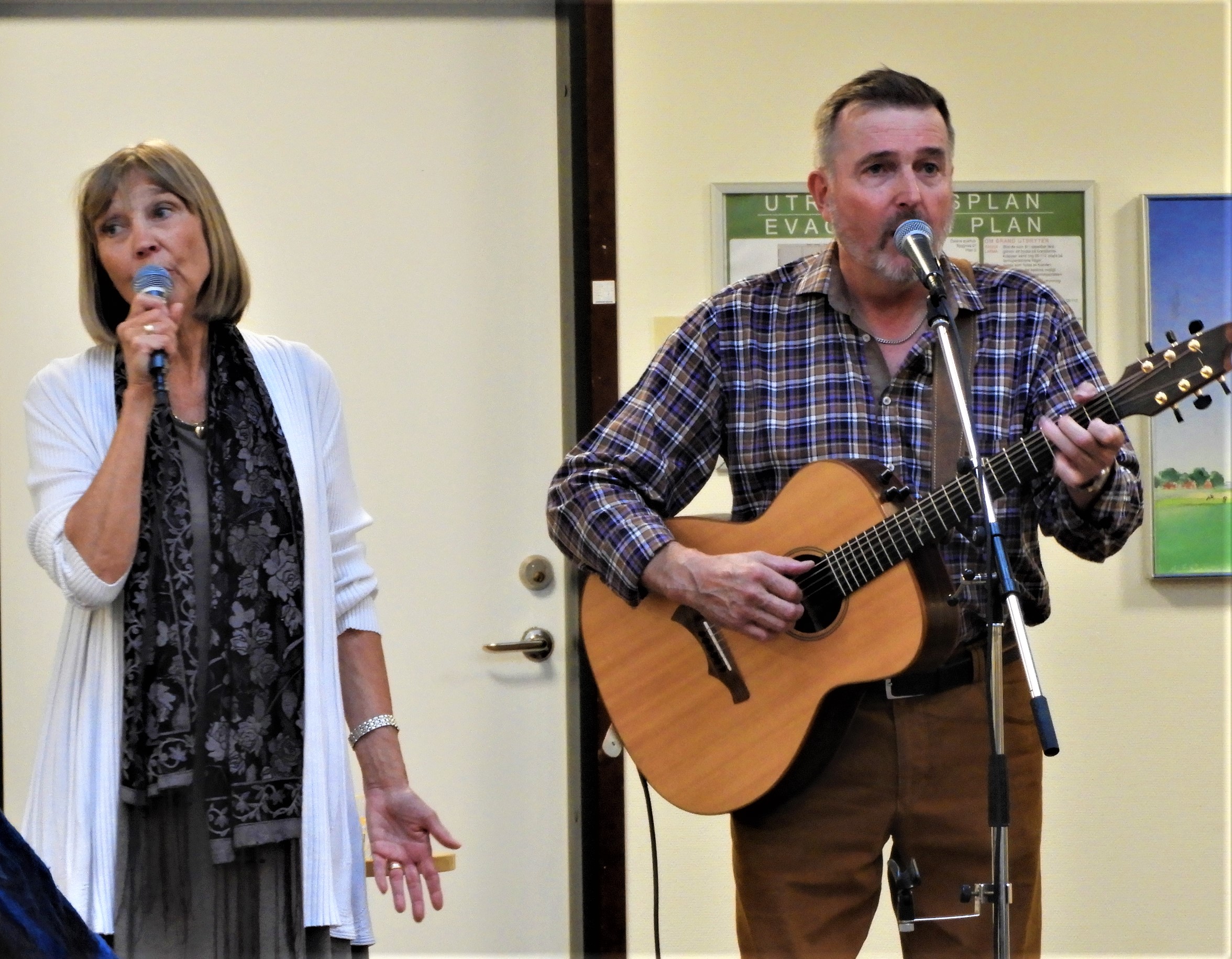 Onsdag är musikdag i Dalens sjukhus och jag råkade komma just som Titti Sjöblom och hennes make Ehrling Eliasson hade börjat sin spelning. Hela entréhallen var full av lyssnare och förutom sina egna låtar drog de förstås några av mamma Alices också och jag förflyttades till 40-talet och alla vi som var med på den tiden kan låtarna helt utantill, varenda ton, så det var inte svårt för Titti att dra igång allsång.