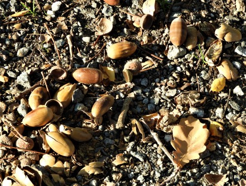 Liksom de flesta träd i år har ekarna fått rekordmycket frukt och ekollon täcker nu marken i dungen