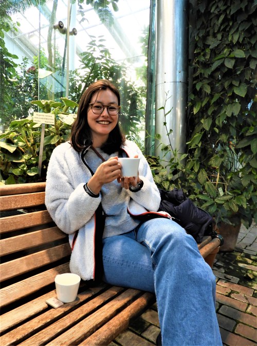 Vi tog en laxsmörgås i Anderssons växthus och sen gick vi en runda i Bergianska trädgården. Selina fick se och pröva både trapporna och fjällen, hon har varit här förr men det är längesedan. Glömde att eftermiddagen var kortare och skymningen kom smygande. Väl hemma igen hjälpte mig Selina att lyfta in krukorna med saffranskrokus från balkongen, termometern visade noll och de som börjat skicka upp gröna strån fick inte frysa.