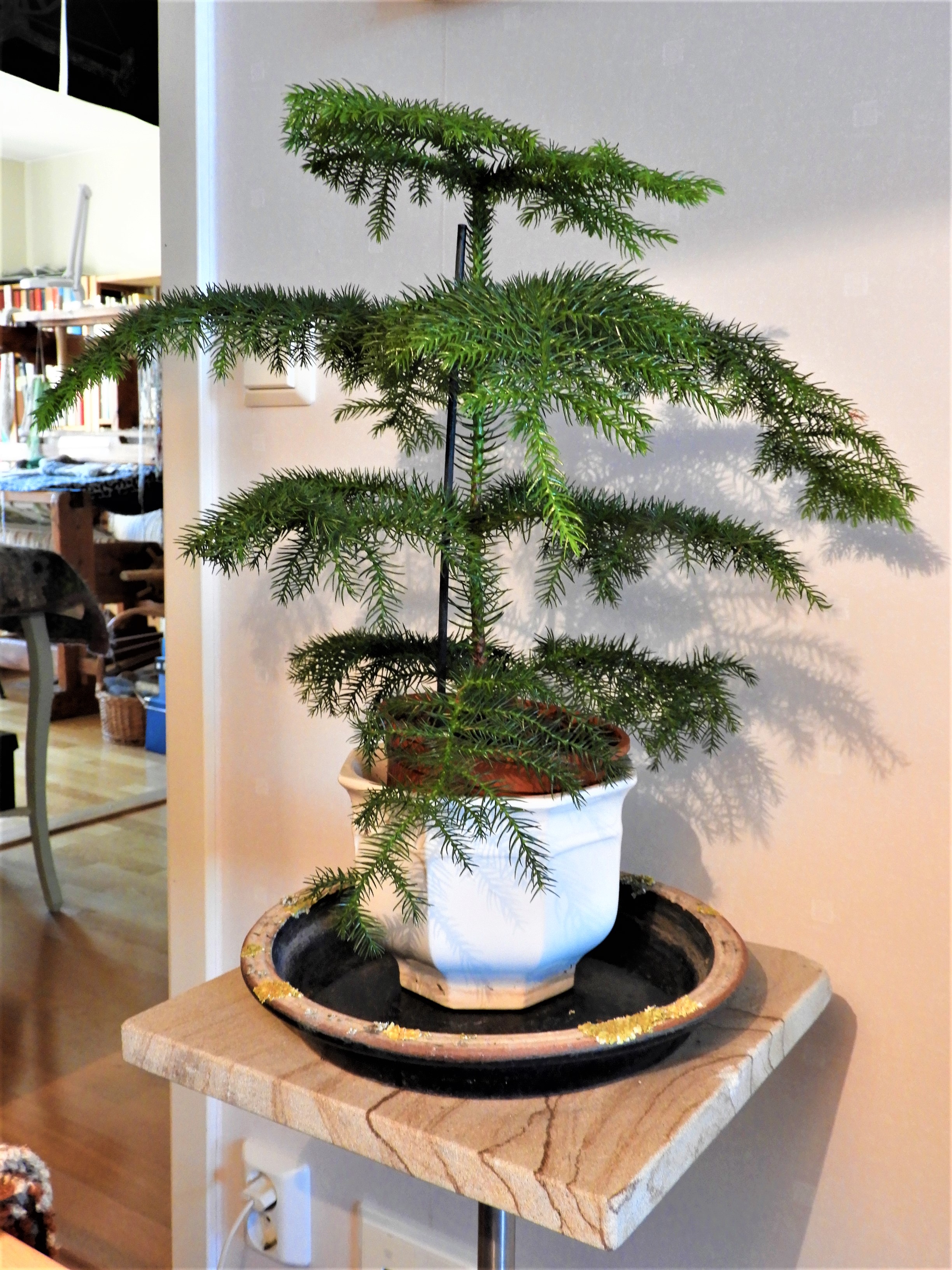 Rumsgranen, (Araucaria heterophylla) är min julgran och den har fått en ny våning med grenar sedan förra året, den har sitt ursprung på en annan sida av jordklotet.