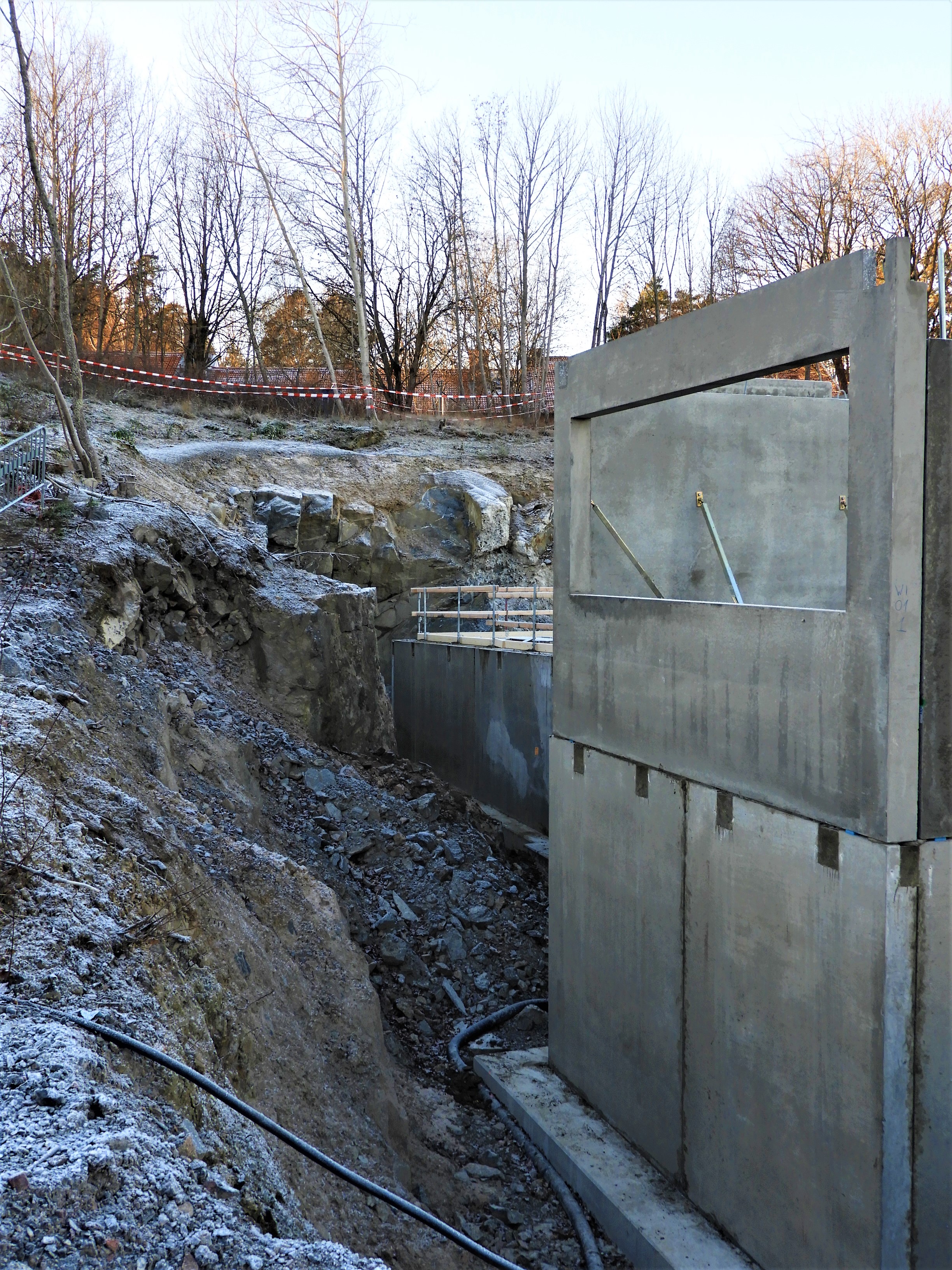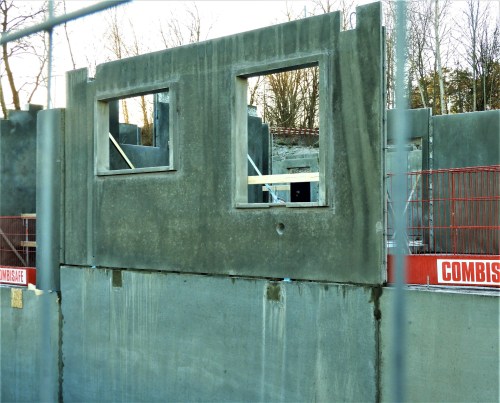 I går såg jag att betongelementen är på väg upp, det går fort att bygga med maskiner.