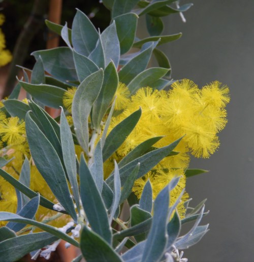 Doften här inne är nog det man blir gladast av, en mimosa, (glömde läsa namnet) är ännu nyutslagen och lutar sig mot en pelare det står Australien på. Åååkänn bara!