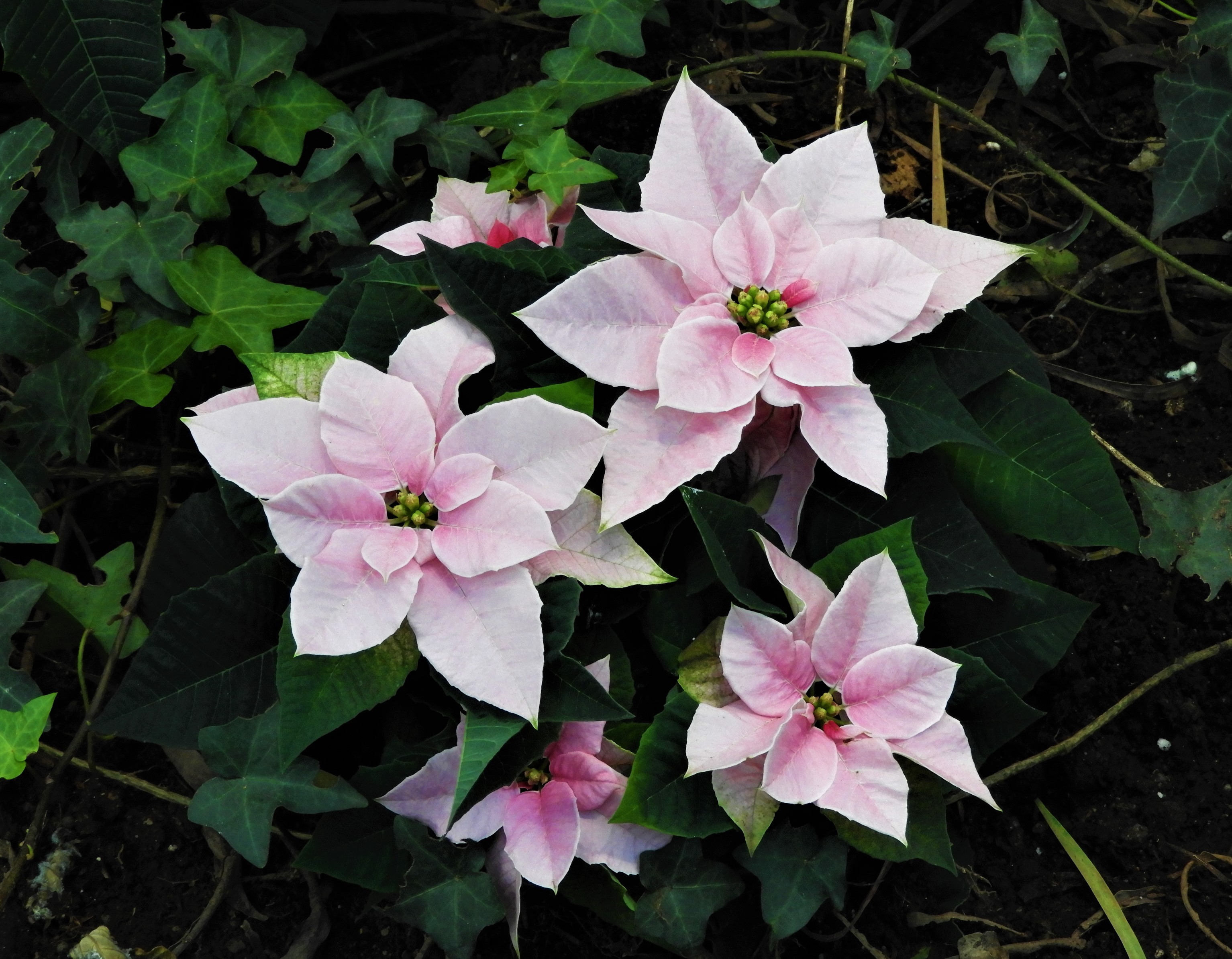 Julstjärnor i många ovanliga färger med hälsningar från Ulriksdal.