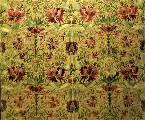 Tapetmönstren är alldeles fantastiska. Silkesbroderierna gör en andlös. Vilka arbeten! Hade ingen aning om att han var den brittiska socialiströrelsens grundare. Vilken vacker tanke att vilja skapa vackra föremål för vanligt folk. Så intressant om typsnitten för att inte tala om inte tala om trycket av Chaucers samlade verk. Du måste berätta om du hittar något tryckt verk på antikvariatet.