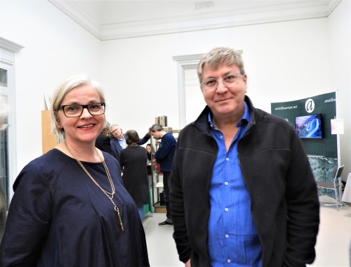 Här har Bengt fått Tora i knäet, det här är hennes första bokutställning.