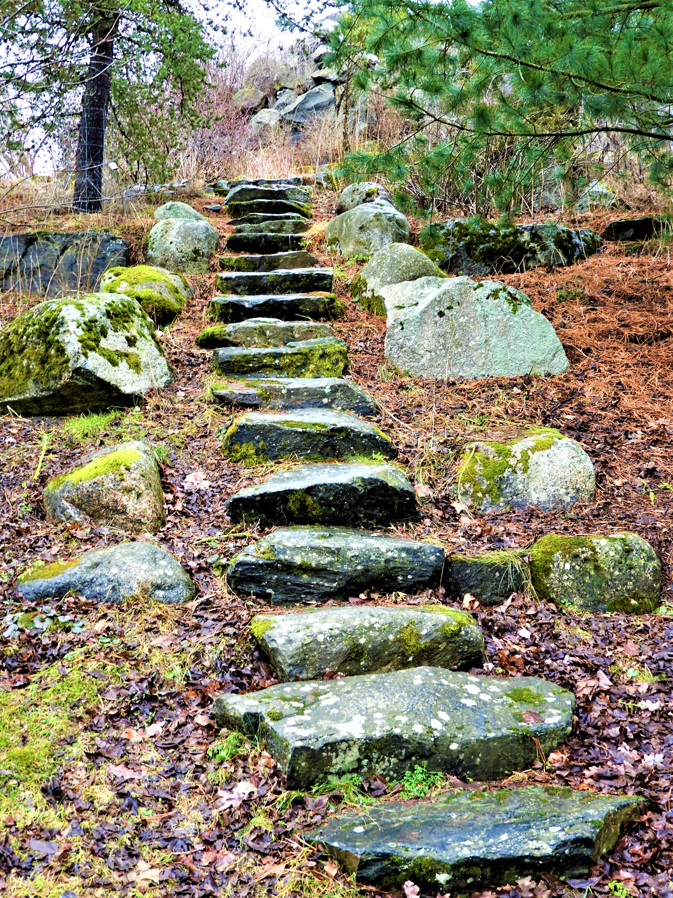 Mossorna är som grönast idag, på breda stigens kantstenar.