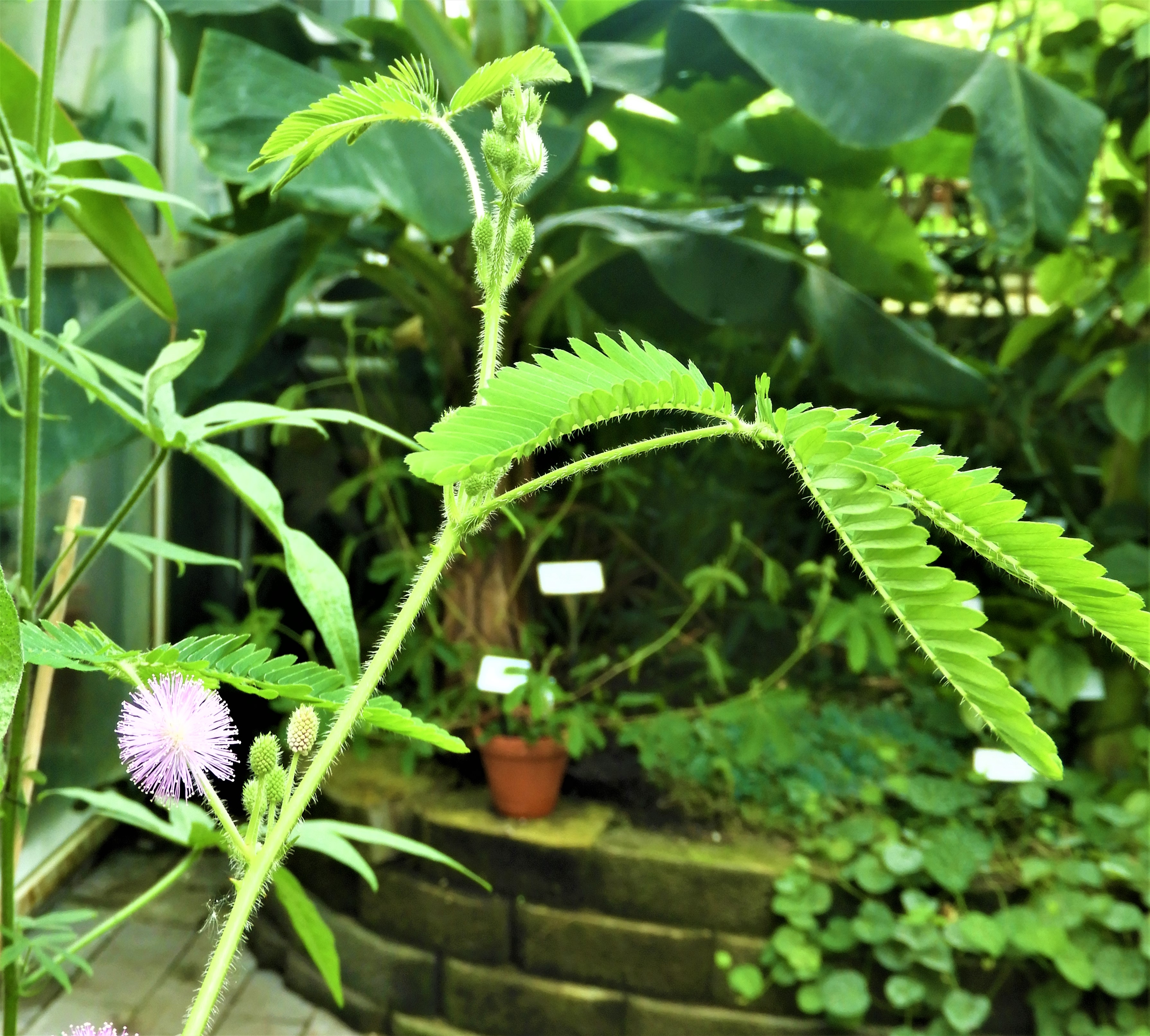 Den känsliga Mimosan som fäller ihop bladen då den blir berörd.