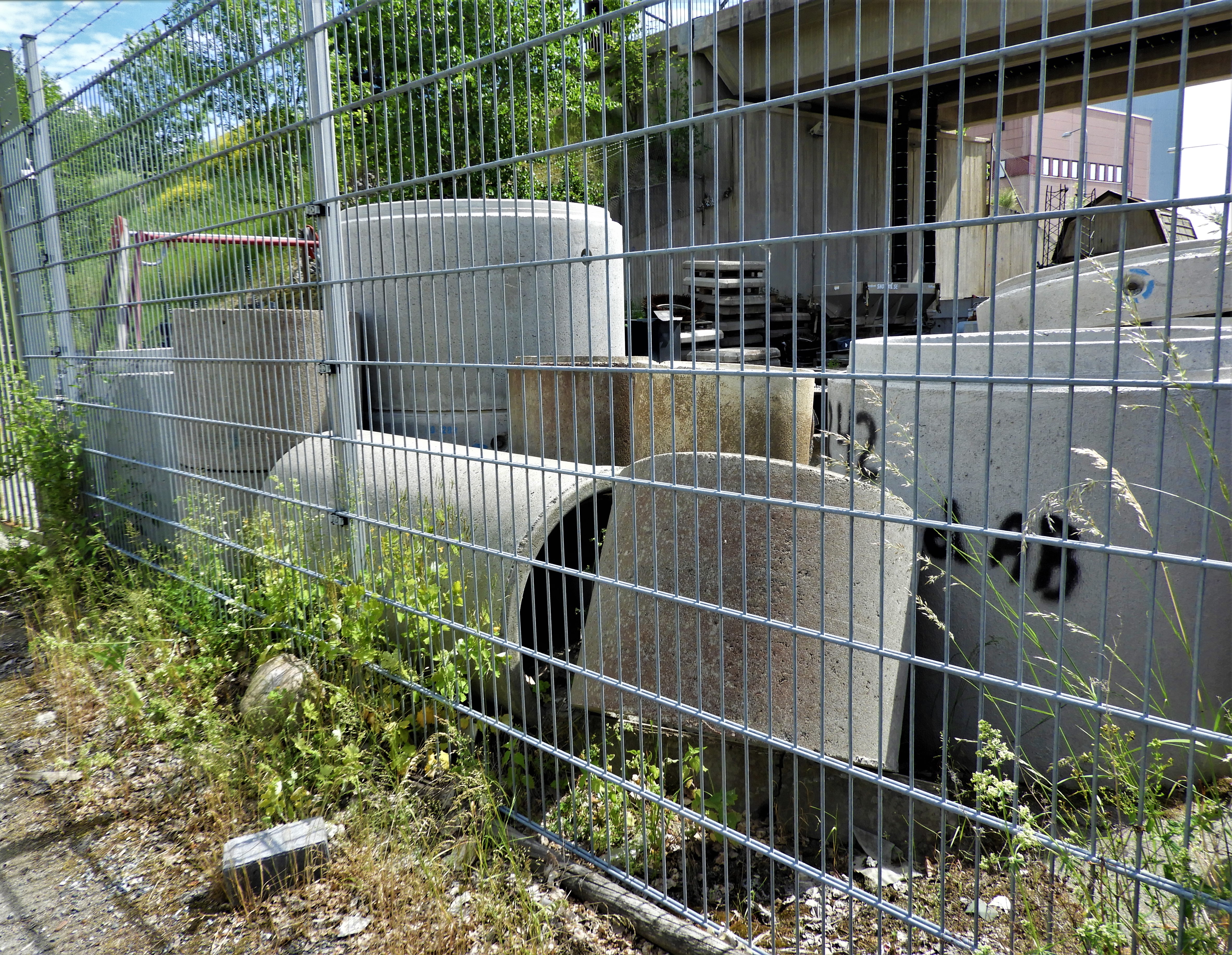 Idag for jag ut igen, måste kolla hur det ser ut kring ån. Parkerade nere vid kommunens förvaringsplats för överblivet material. Där jag en gång för flera år sedan återfann Amundins isärplockade skulptur. Det som nu tornar upp sig nära ingången ser ut som de stora rören man skaffade för att skapa en parkourbana åt ungdomen på gamla gymnasietomten. Jag säger bara, ser ut som.