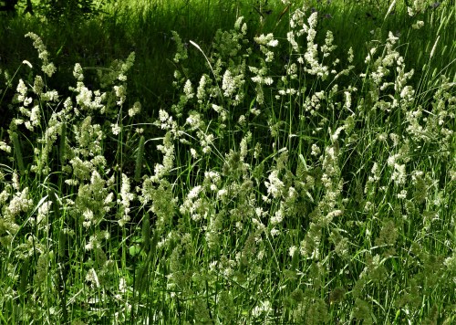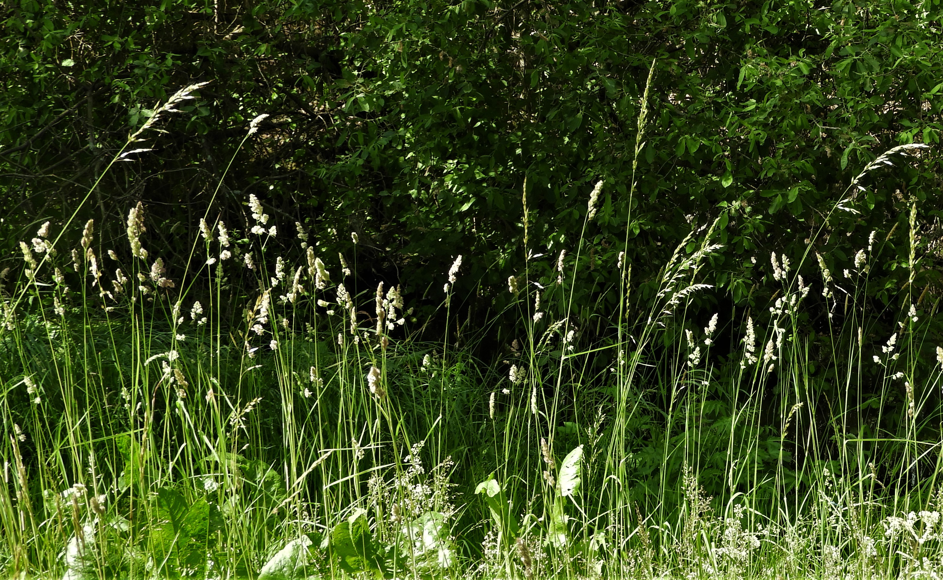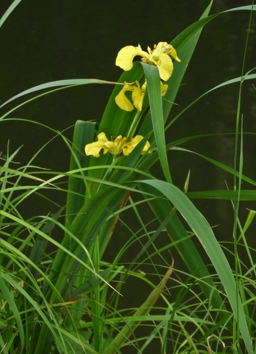 Nere vid ån, där den bildar en liten sjö står en ensam Iris och blommar.De olika gräsen kring åkanterna blommar just nu och är ståtliga men jag har inte rätt teknik att få dem på bild. Sen blommar allt vi inte vill få in i trädgårdsland. Ryssgubbarna är väl nästan slut men kirskålen blommar pampigt, där den har sina reservat.