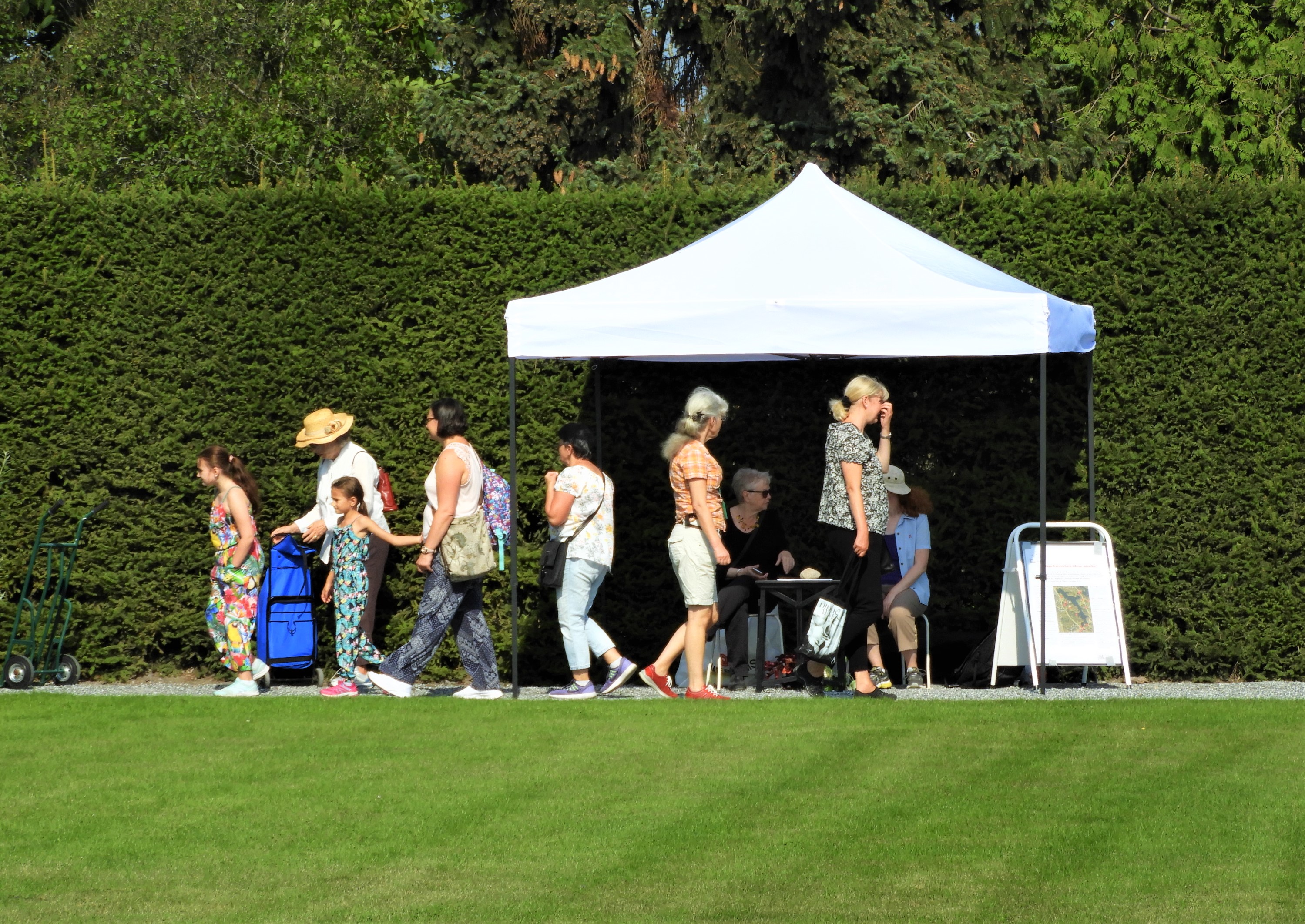 Innanför granhäcken strömmade människor åt olika håll mellan olika föreningars framdukade lockelser.