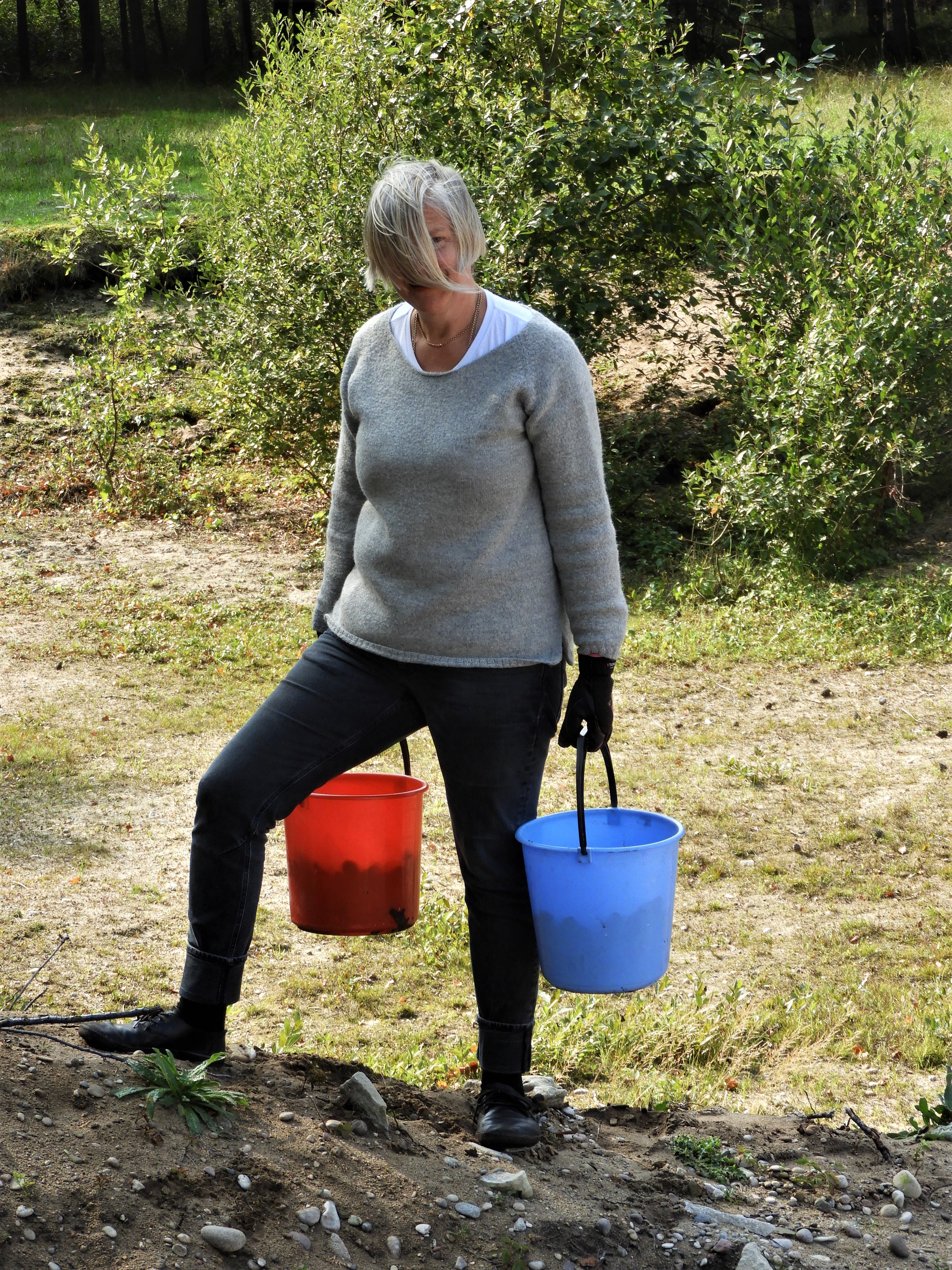 Karin bar sten att låsa sanden under huset med, törs inte säga var hon hämtade den.