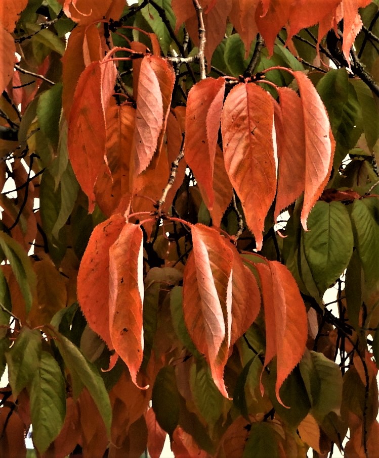 Sista septemberdagen, Niklas har födelsedag, frosten har bitit så löven gulnar, körsbärsträdens blad blir röda och  det går lika fort över som deras rosa vårblomning.