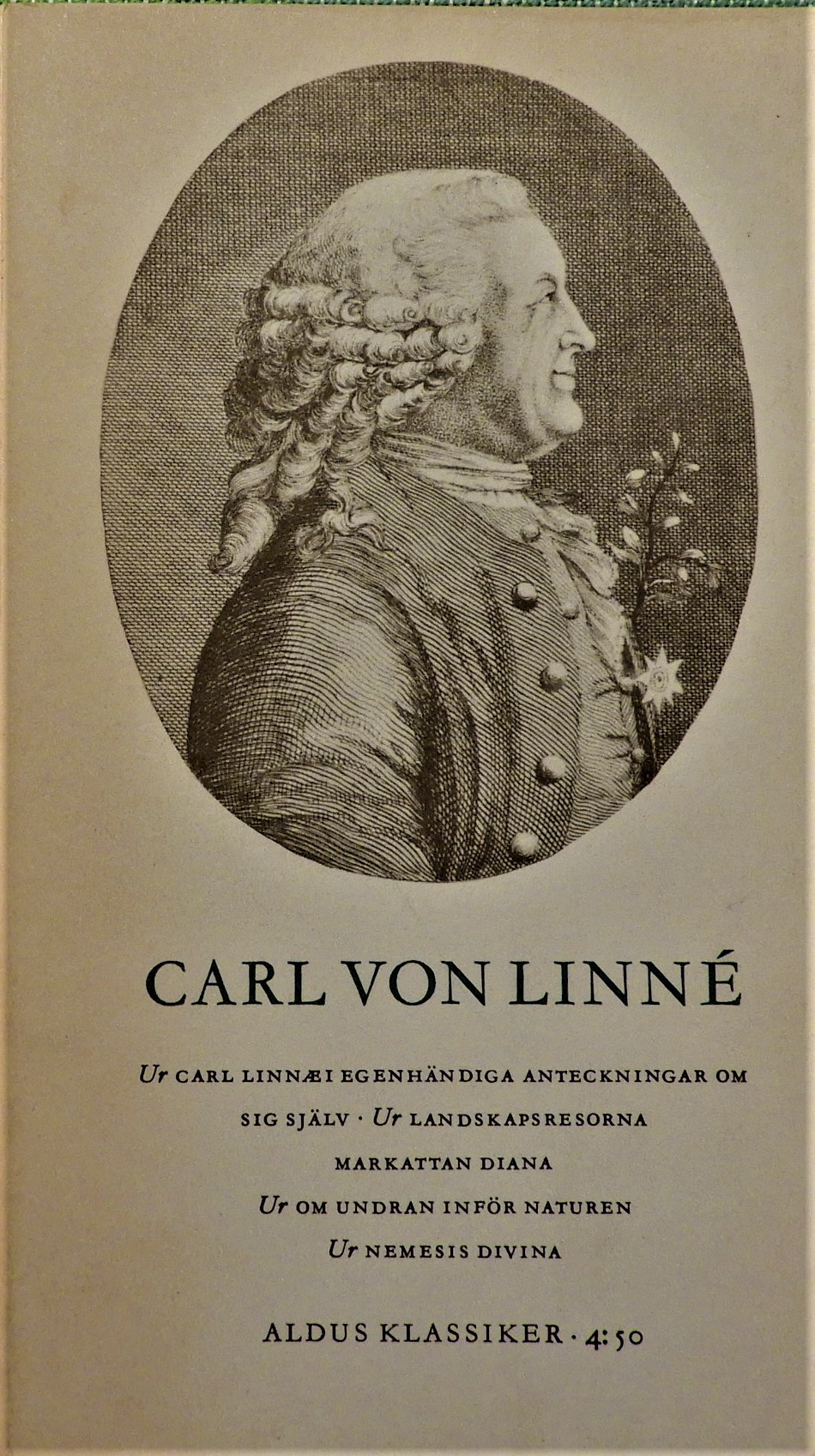Delikata små böcker tryckta 1962 med riktigt tryck och skönt avvägda att hålla i handen och att läsas. En av dem, ett urval texter från Carl von Linnés skrifter av Björn Julén har jag fått med mig hem. Nu läser jag biografin till flingorna på morgonen, lappländska resan på eftermiddagen med tre enorma jämsides uppslagna böcker och Björn Juléns urval läser jag närsomhelst eftersom den går att bära med sig.