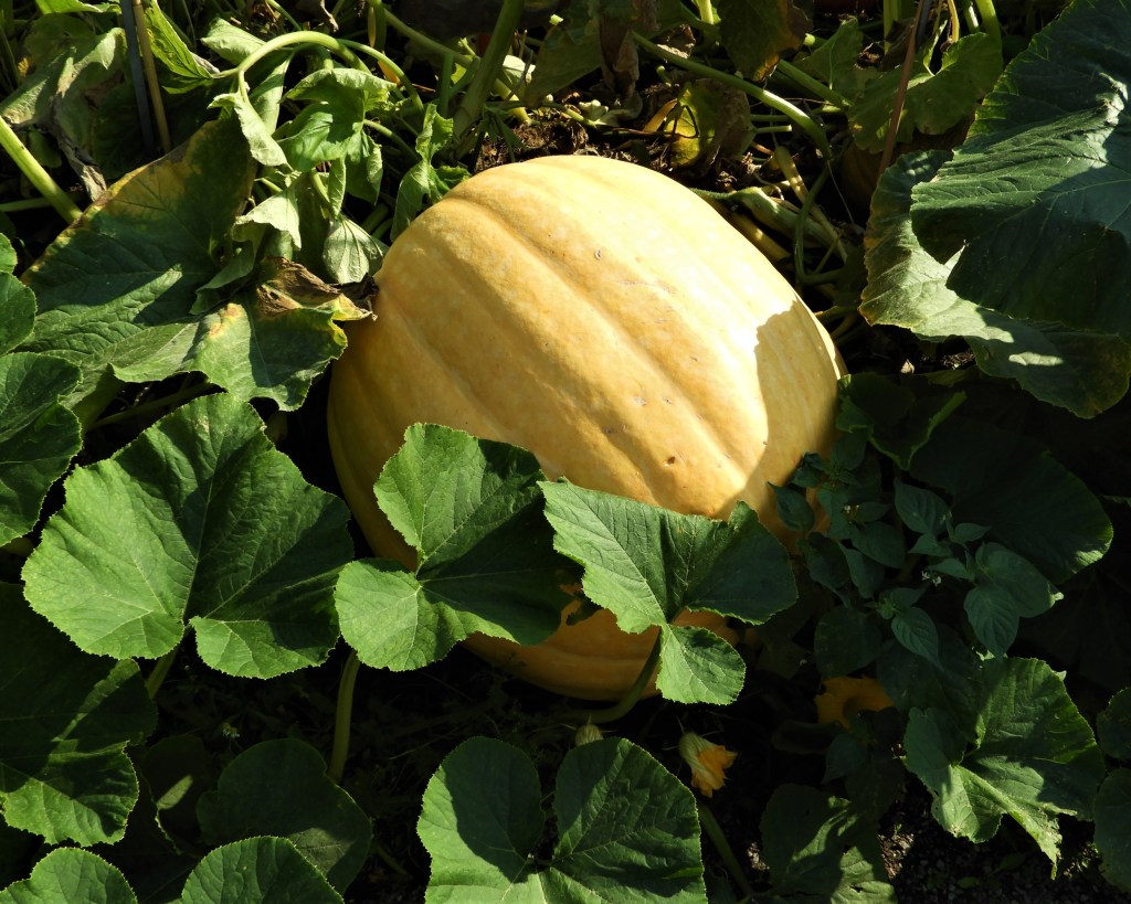 Vid tiden för höstfesten var odlingsbäddarna helt överväxta med grönska och nere under bladen låg ännu de stora pumporna och svällde.