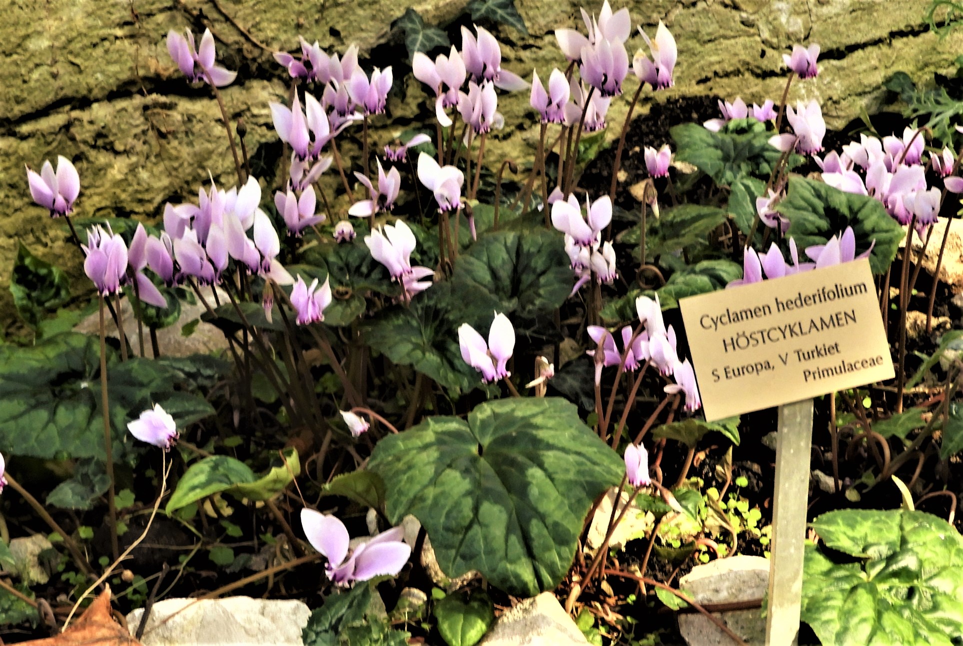 På vinberget under rankorna växte också höstcyklamen och gav intryck av att ha spritt sig själva, de häe heter Cyklamen hederifolium och det säger att bladen liknar murgrönans.