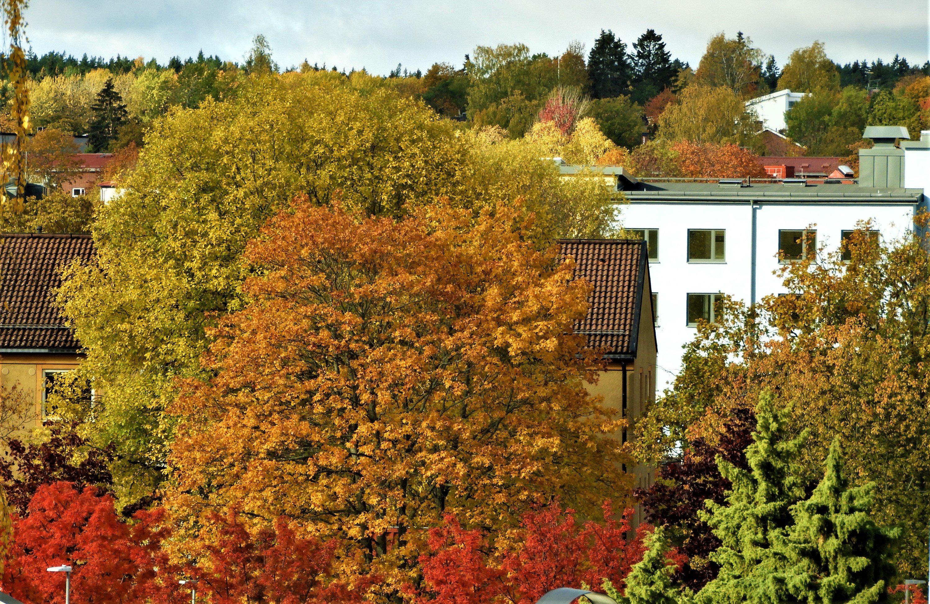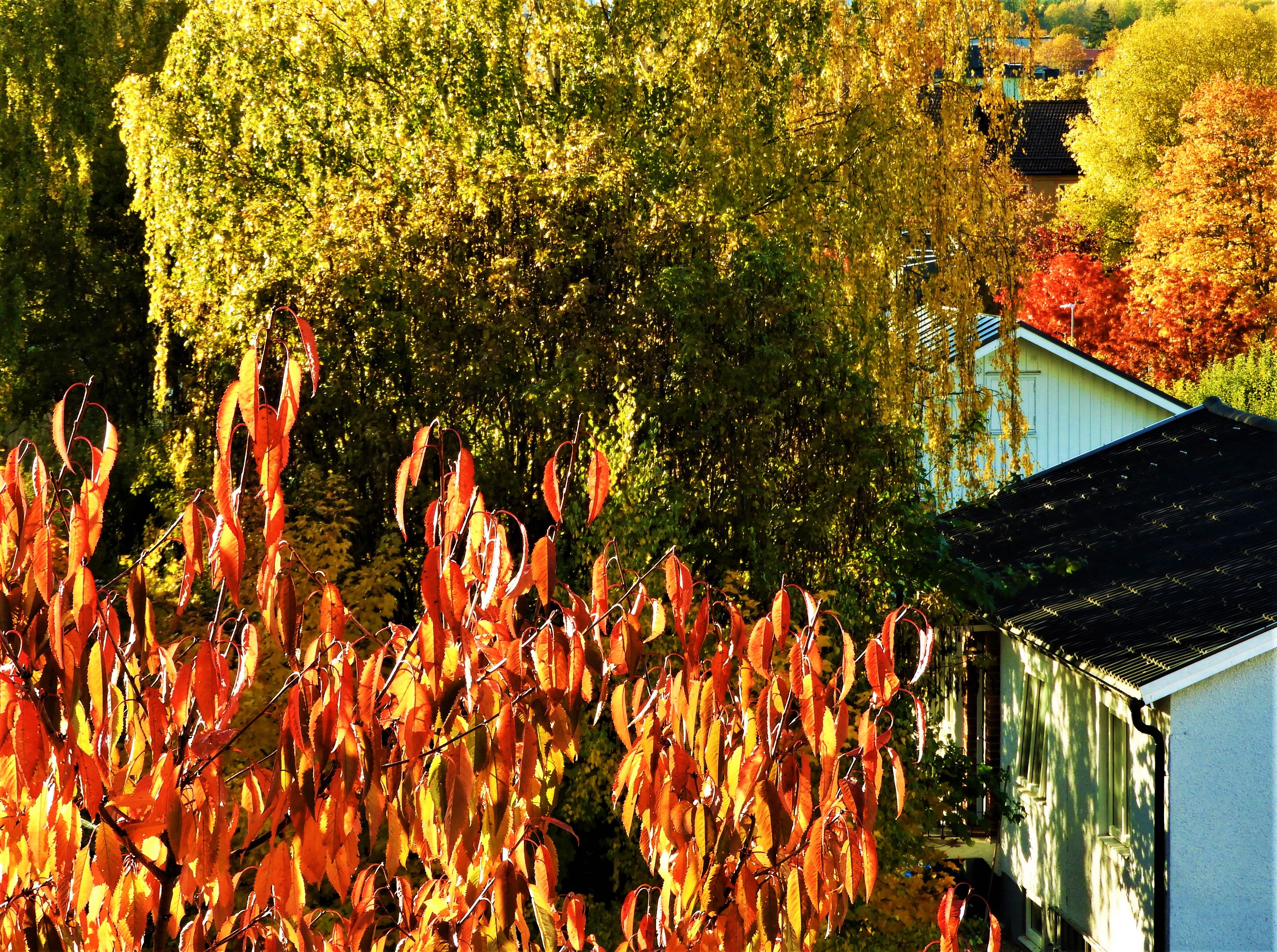 Det är vackert så länge det varar. Under vår/försommar är lövverken väldigt olika i färg. Sedan blir det ganska trist jämngrönt, men nu på slutet kommer de fantastiska färgvariationerna tillbaka en kort tid. Bara att tacka och ta emot, samt (som min gamla mor brukade varna för) gå försiktigt på löven som faller på gatan och kan bli såphala i regnet om man kliver fel på dem.