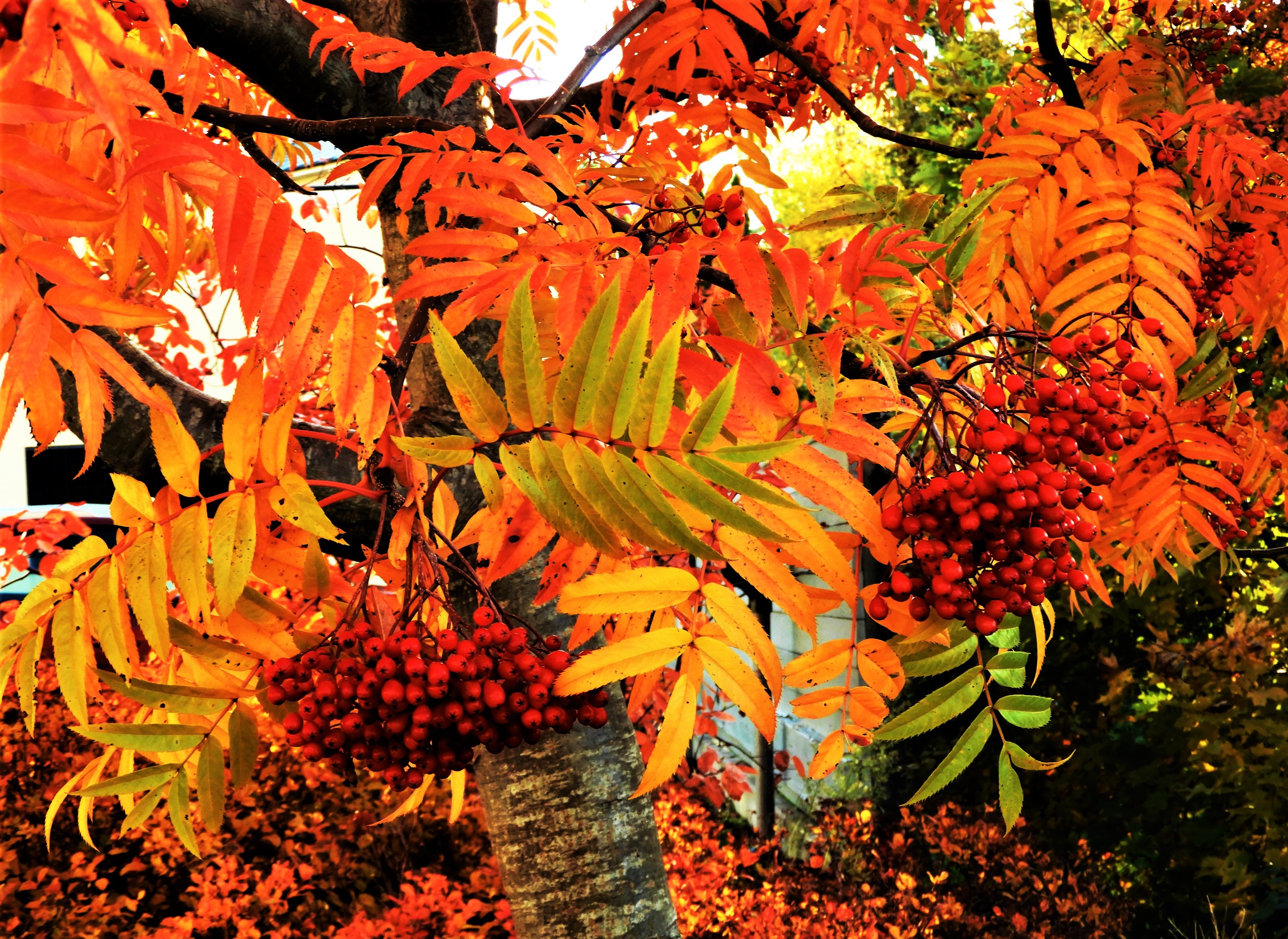 Färgerna var så häftiga, så jag blev tvungen att gå ut och se om rönnarna på Hugo Sabels torg hunnit byta färg. De var inte så eldiga ännu men har ökat i omfång.