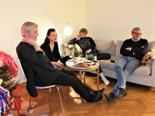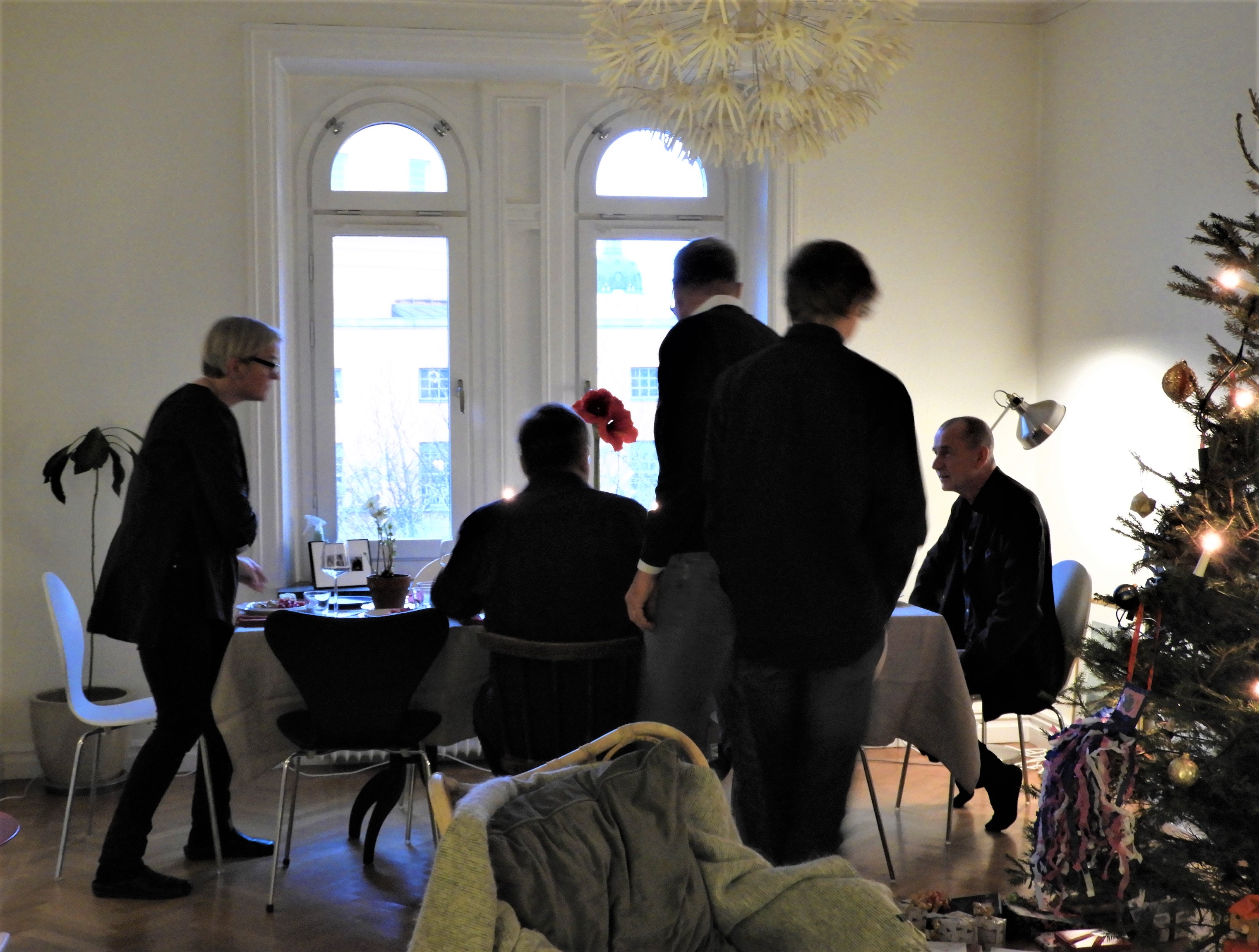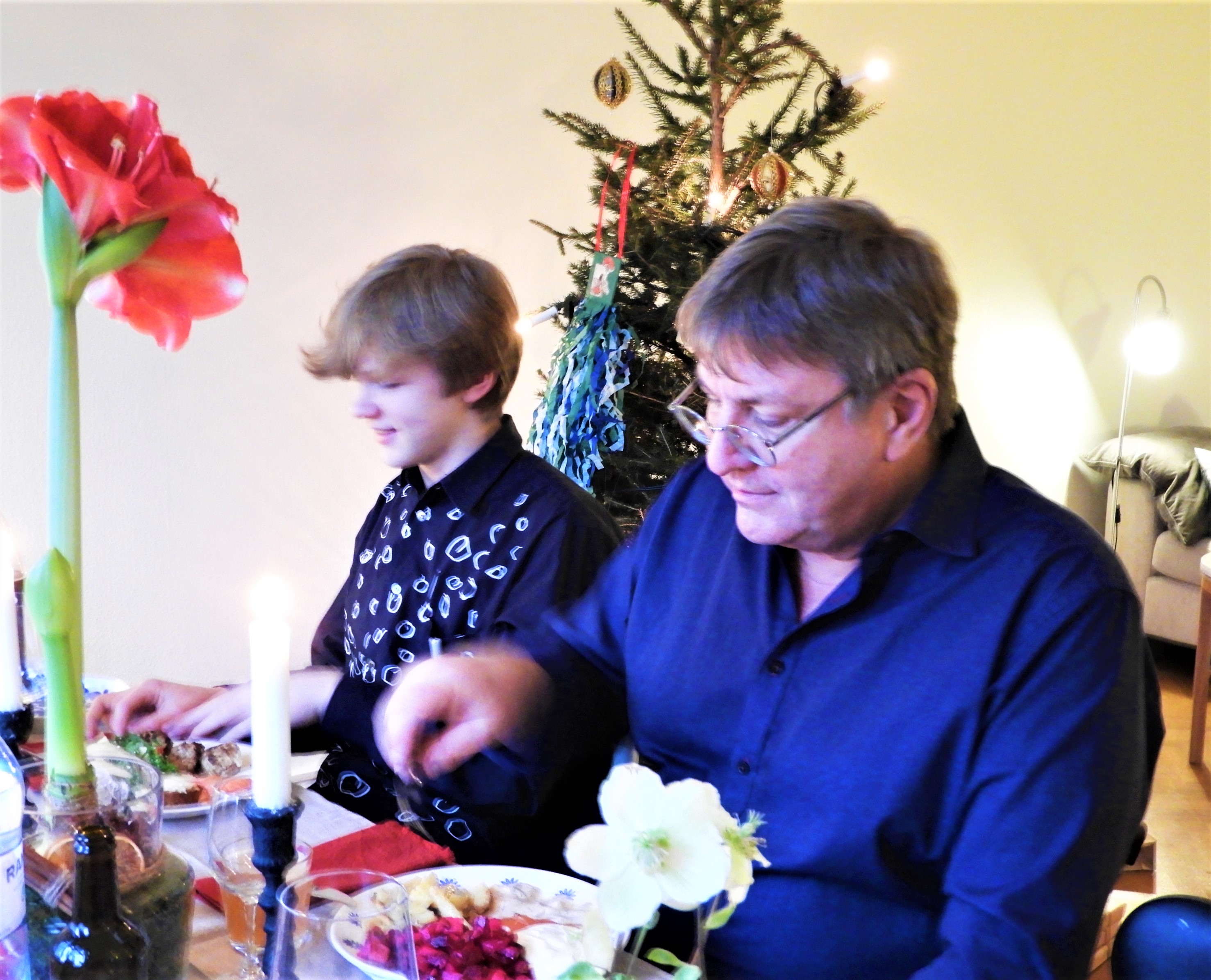 En något nedbantad skara av ättlingar till Lasse och mig träffades hemma hos Gösta och Selina på Julafton. Alla bidrog med något som vi inte ville undvara, så det blev sillsallad, kräftsill, gravad lax, rullsylta, grönkålssallad, Jansson, vegetariska köttbullar och två mörka sorters bröd..