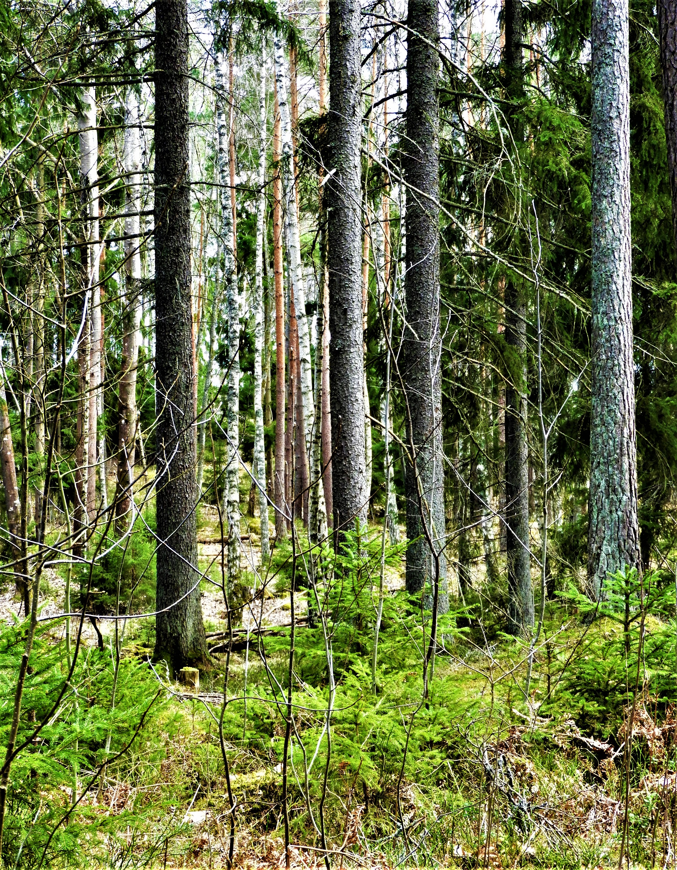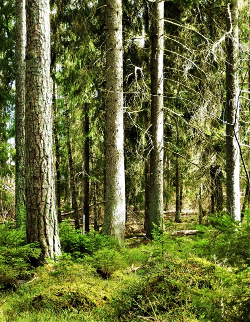 Å vad fint! Allt grönt fast än det är så kallt, en vacker skog!