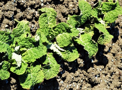 Köksträdgårdslanden får vänta lite till men några övervintrare är kvar. Att det är kardborreblad syns på färgen men Rotkardborren visste jag inte om förut.