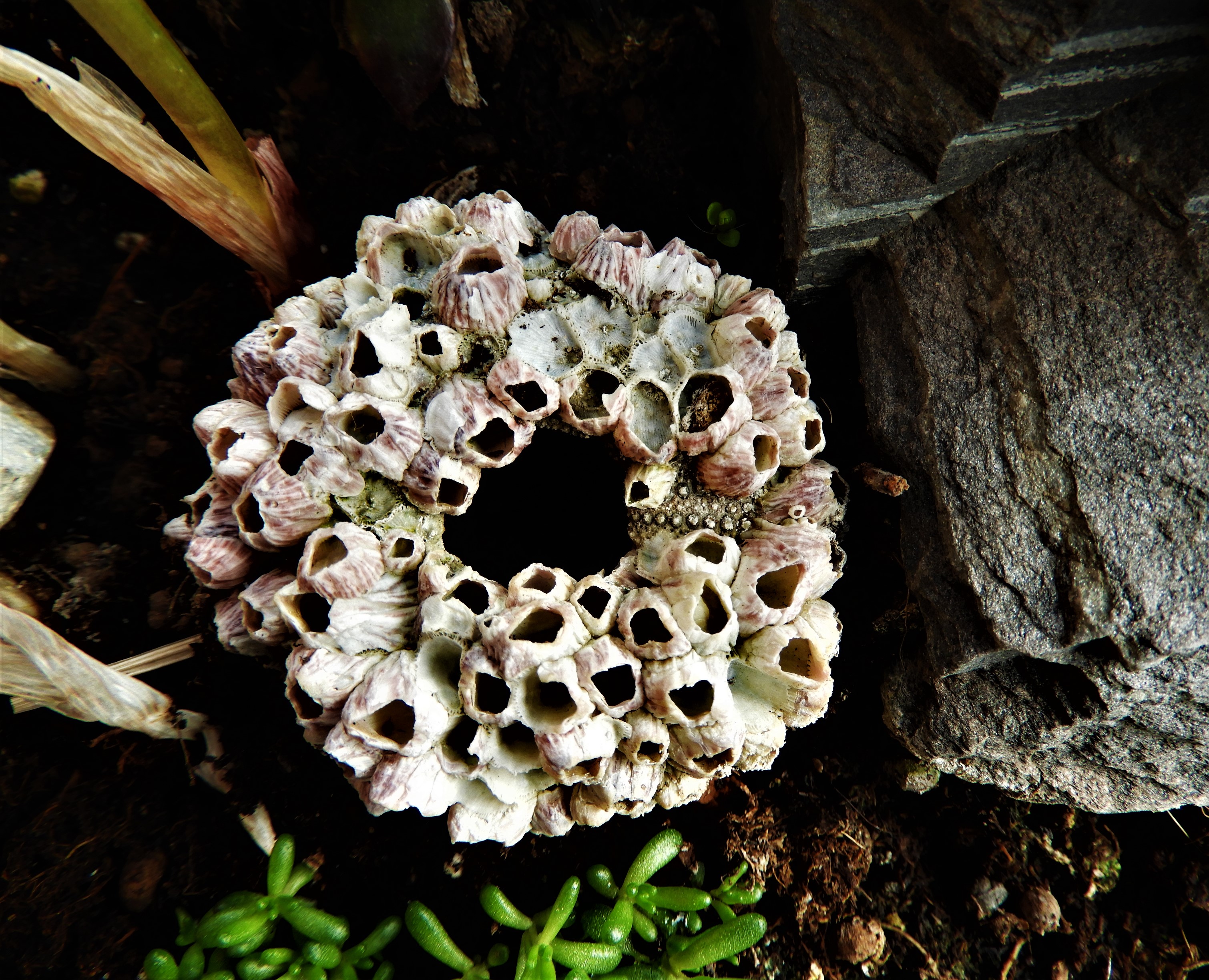 Någon sorts havstulpaner som växt på ett sjöborreskal låg uppspolat i en japansk hamn, när Gösta skjutsade oss till havet.