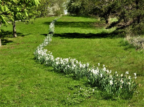 på marken ett hav av narcisser