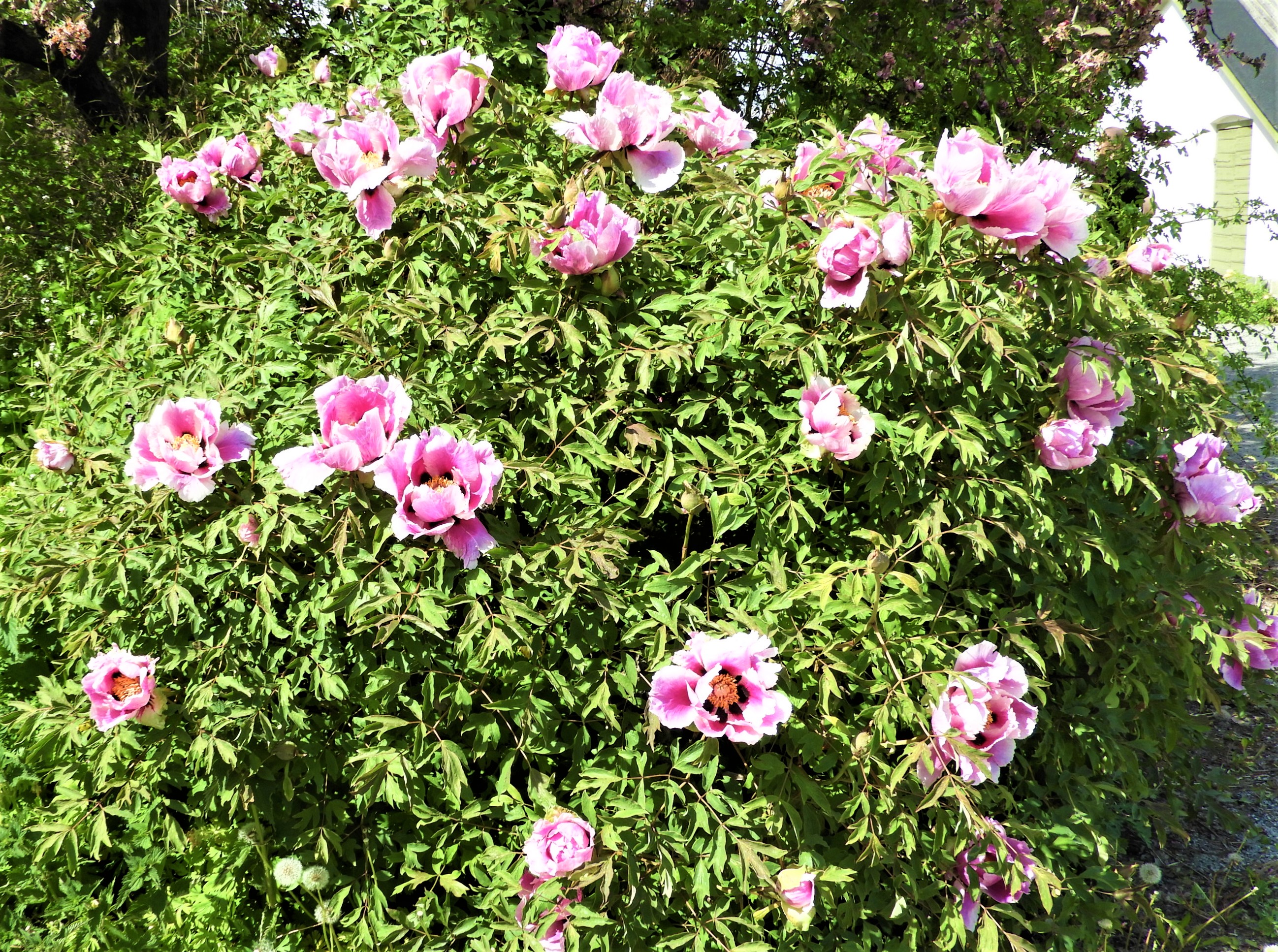 Trädpion utanför Bergianskas institutionsbyggnad