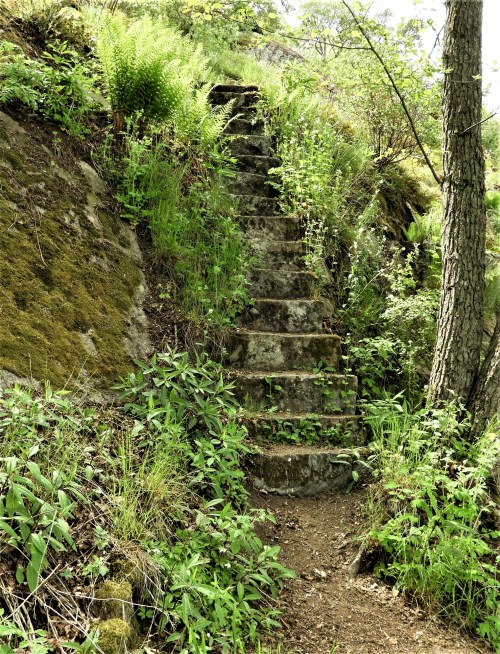 och här är nästa trappa, även den påklädd och inramad av växtlighet och här kommer ormbunkarnas område.