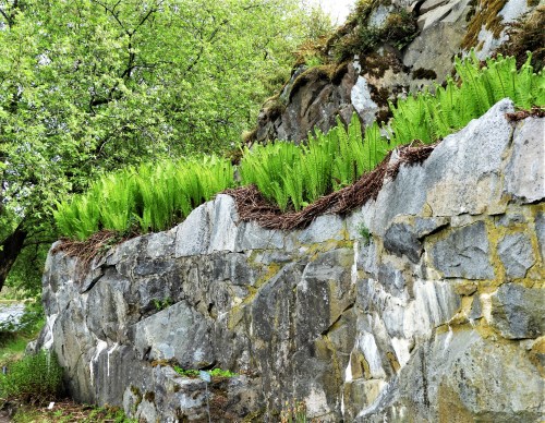 Och titta ! De lagade stenkaren har fått ormbunkar, tänk när de fått växa till sig lite !