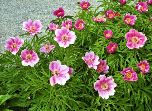 Korallpionens blommor i planteringen nära Italienska terrassen var på väg att sönderfalla men höll ihop så jag fick se dem