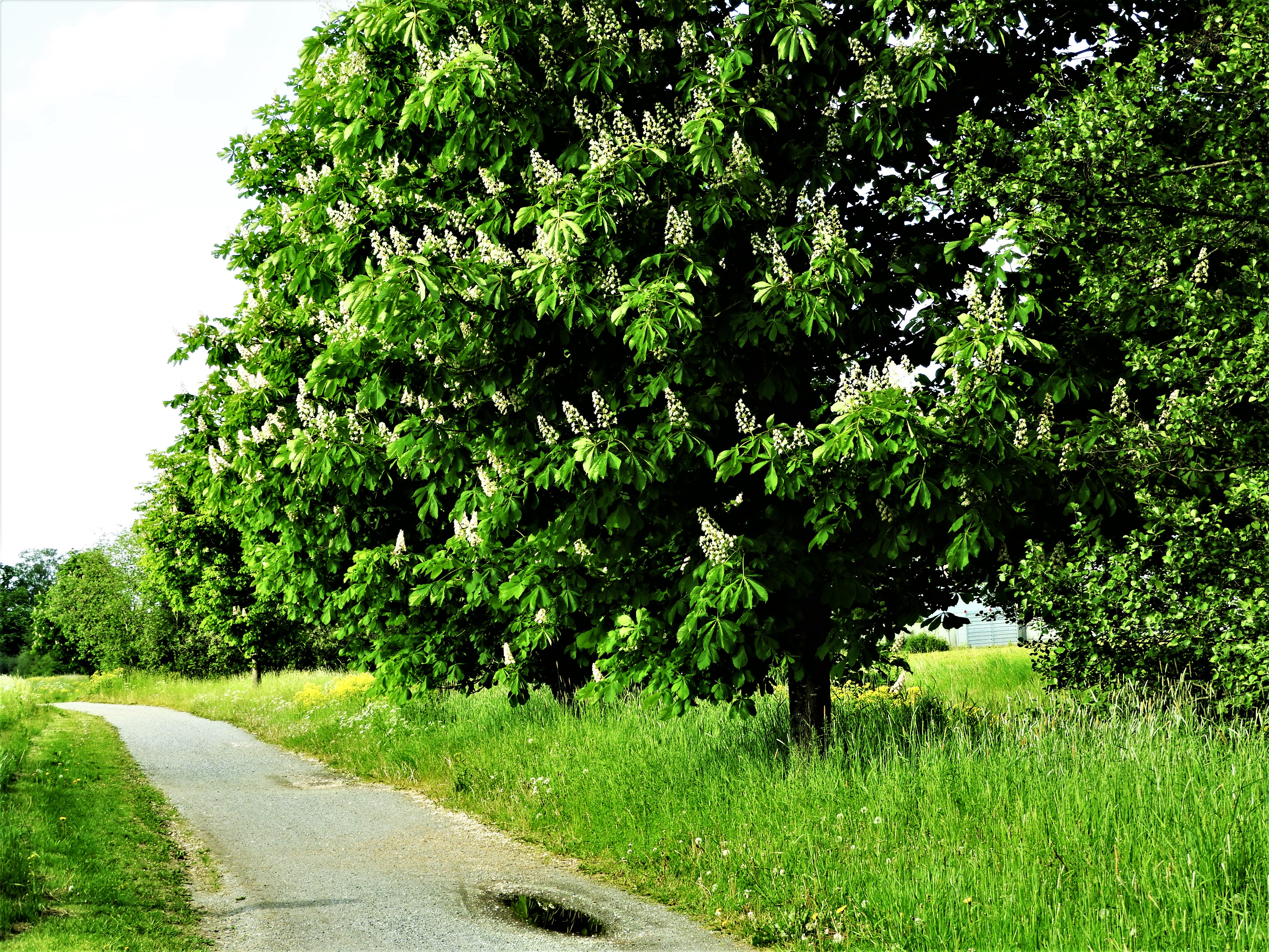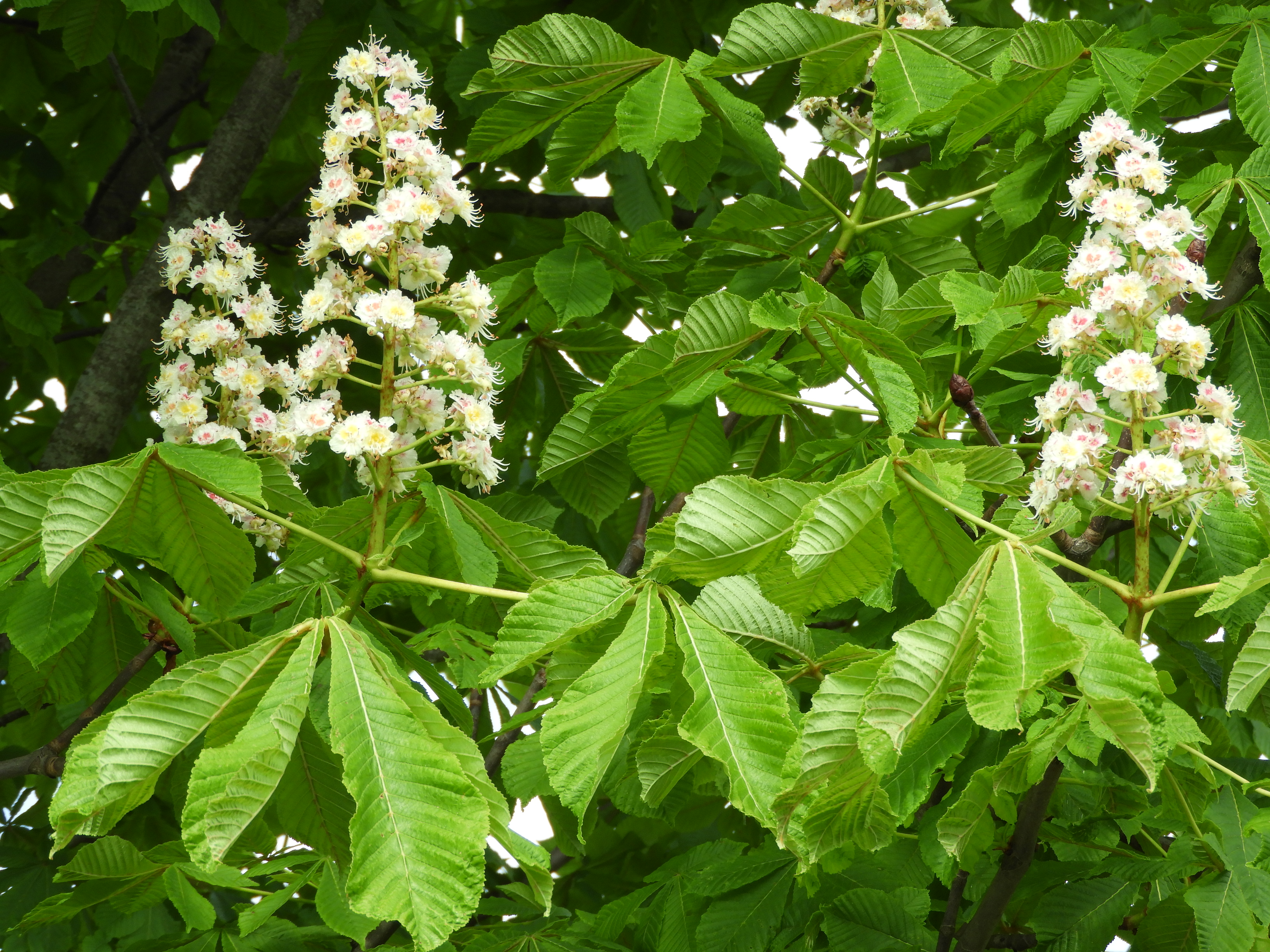 Raden av hästkastanjer mittemot Marabou har plötsligt fått kraftiga kronor och alla blommade.
