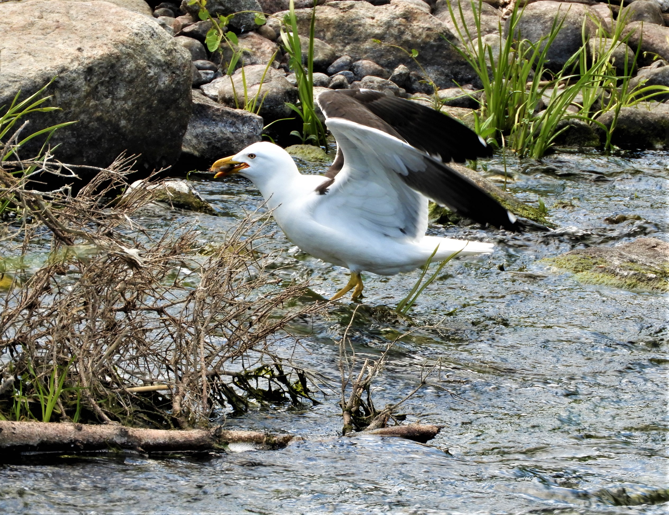 På en sten i bruset stod plötsligt en stor silltrut och visade sin vackra profil.