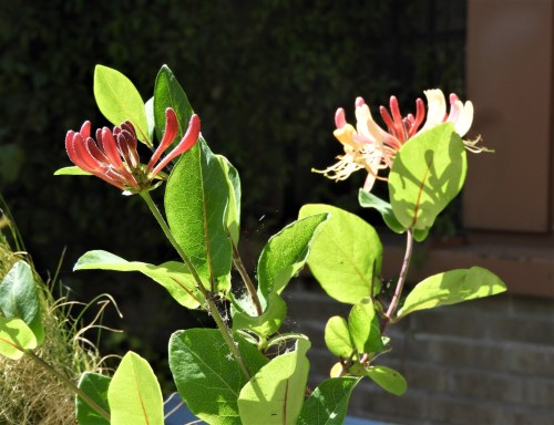 en vanlig kaprifol lindar sig fortfarande kring pelarna vid den rasade pergolan. De hör till de växter som var med från början då trädgården anlades.