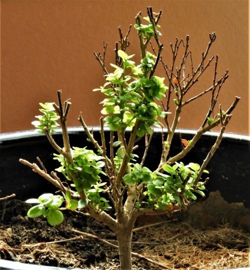 och så här har det gått med lilla buxbomen ! Jag pratar med den varje dag och de gröna små prickarna på grenarna har blivit blad. Jag pratar förstås med alla i kruka men buxbomen som haft det svårast får mest prat.