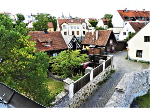 När vi vaknade och tittade ut såg vi Visbytak och små gröna gårdar.